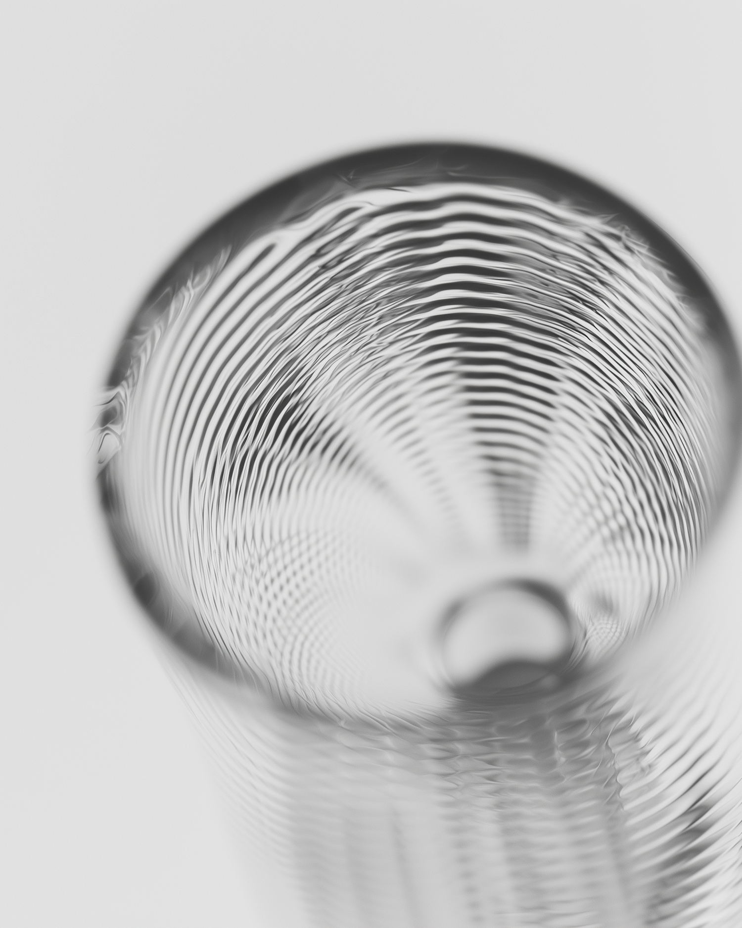 Close-up of a textured glass with wavy patterns, creating mesmerizing light distortions on a clean white background.