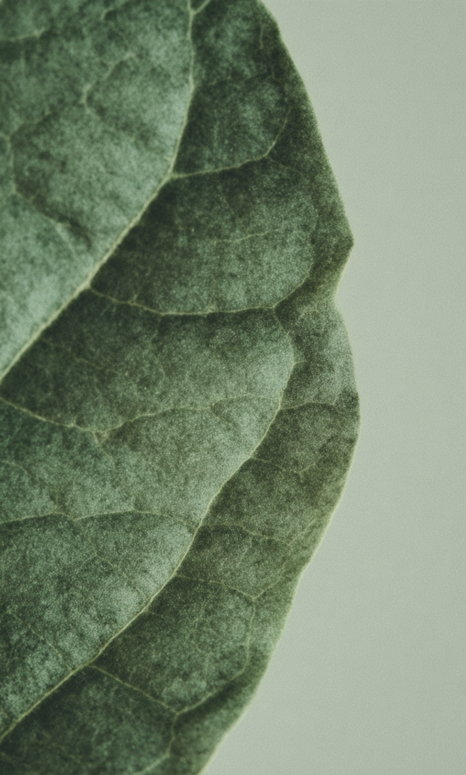 Close-up of a green leaf with detailed texture and veins, set against a soft pale green background, highlighting its natural beauty.