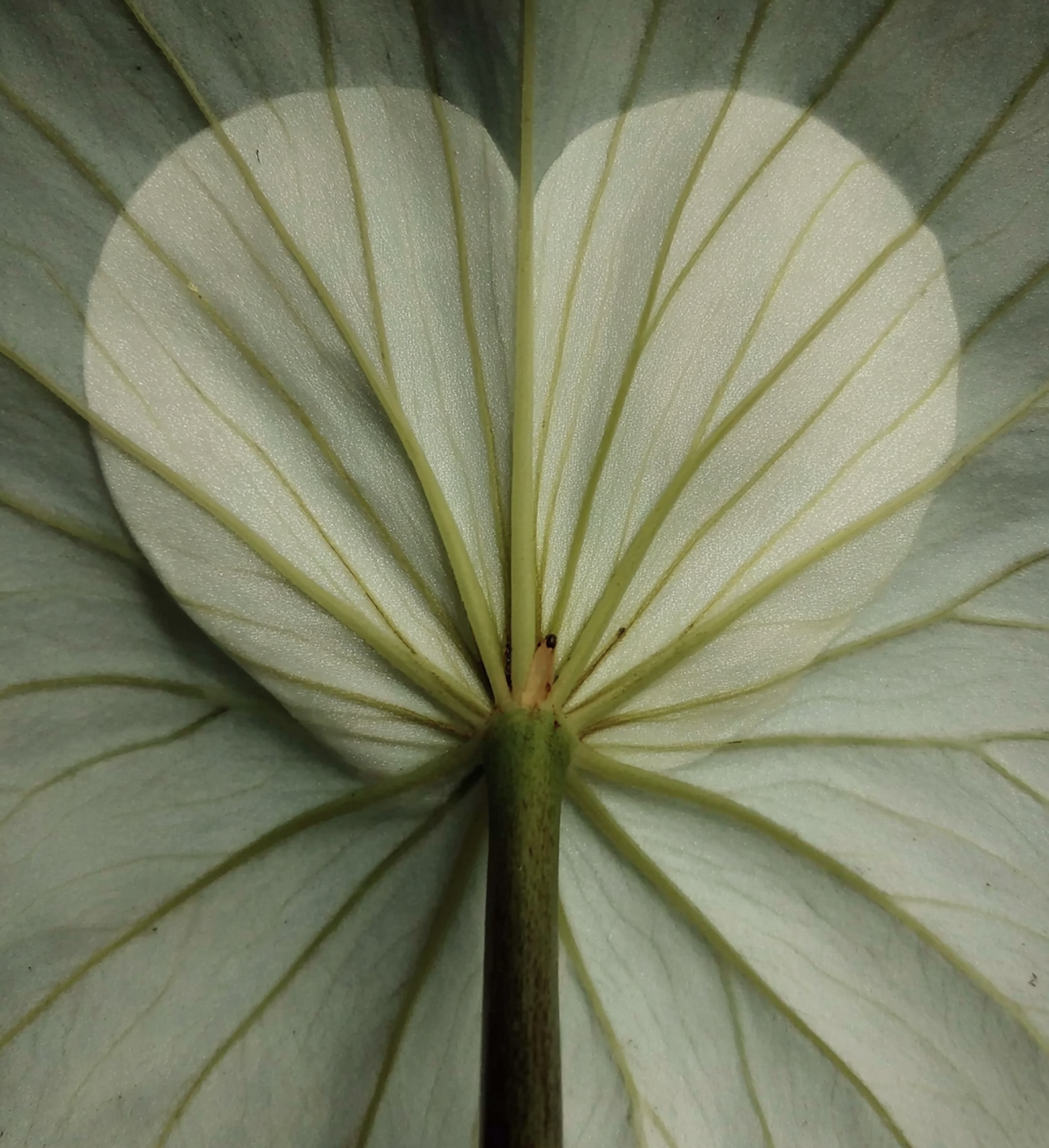 Close-up of a leaf's underside with detailed veins and a translucent texture, illuminated to highlight its natural beauty.