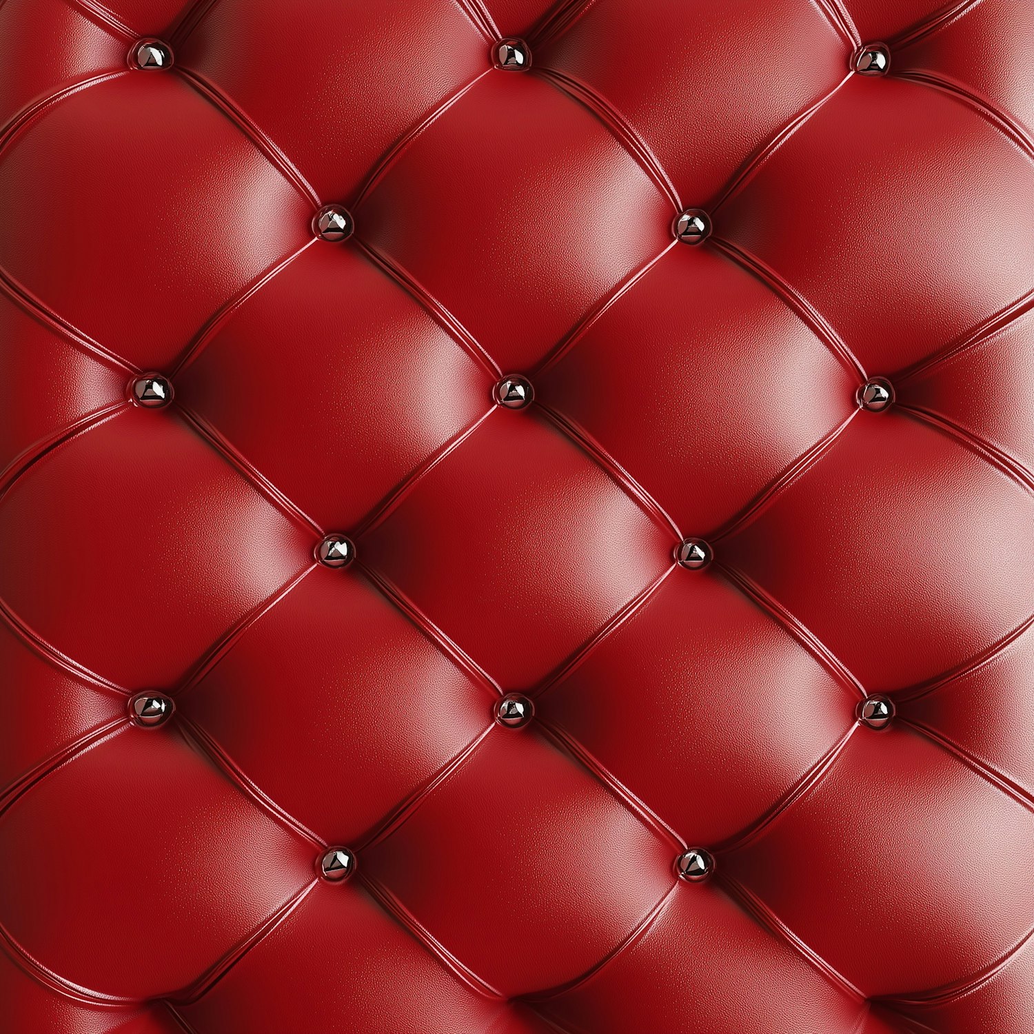 Luxurious red tufted leather with metallic buttons and a diamond pattern, perfect for elegant furniture or interior design inspiration.