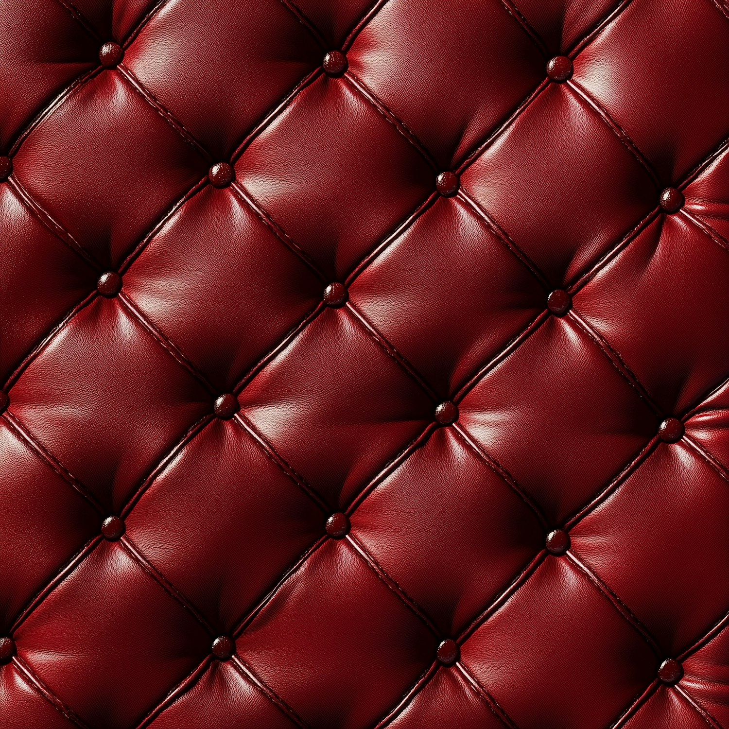 Luxurious tufted red leather upholstery with diamond patterns and glossy finish, perfect for furniture or interior design inspiration.