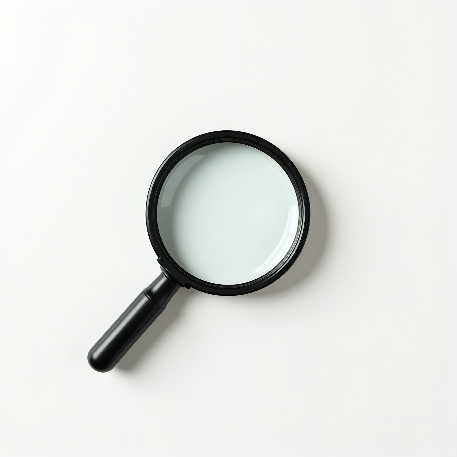 Minimalistic image of a black magnifying glass on a white background, highlighting its design and function.
