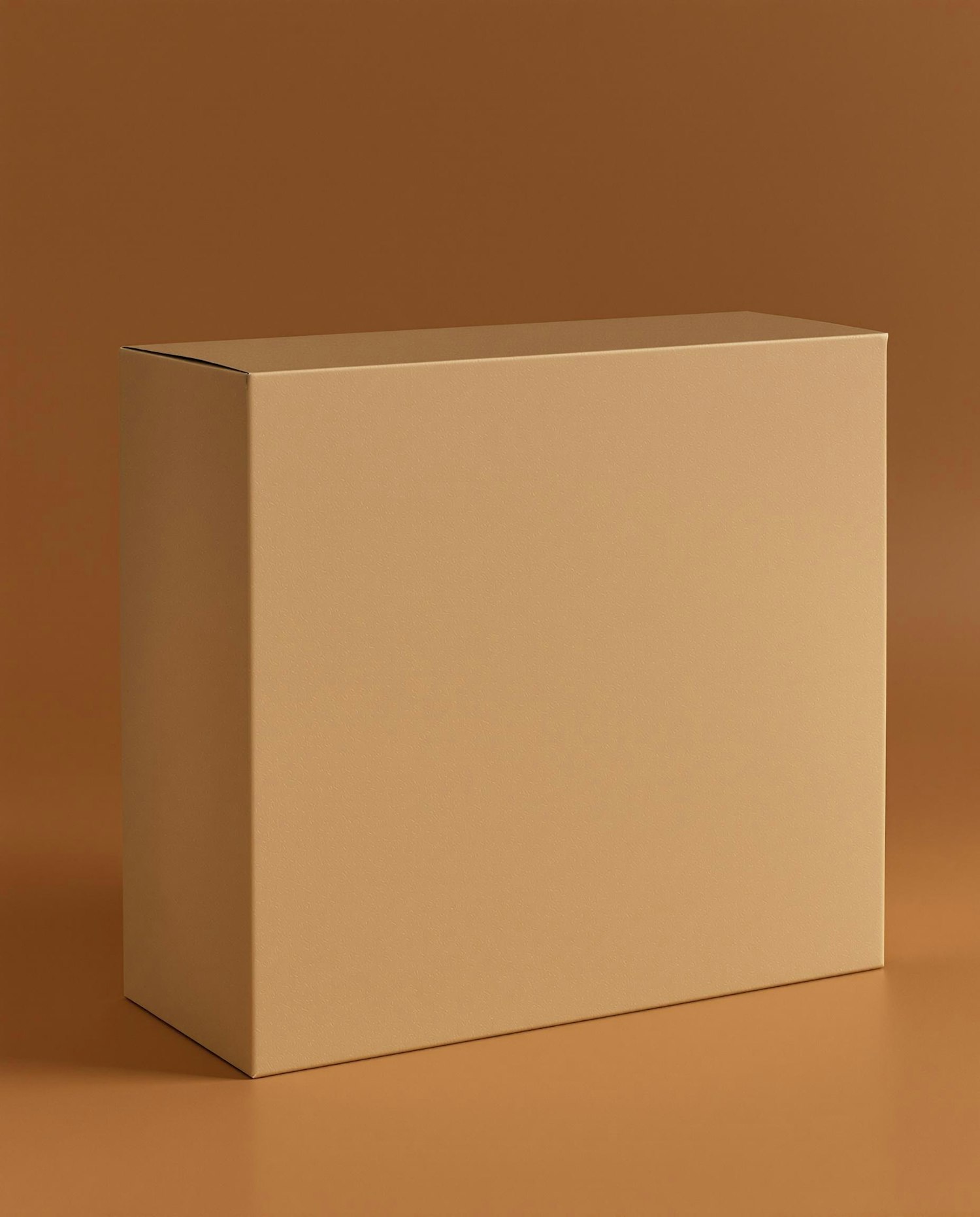 Minimalist light brown cardboard box against a matching brown background, perfect for packaging or branding concepts.