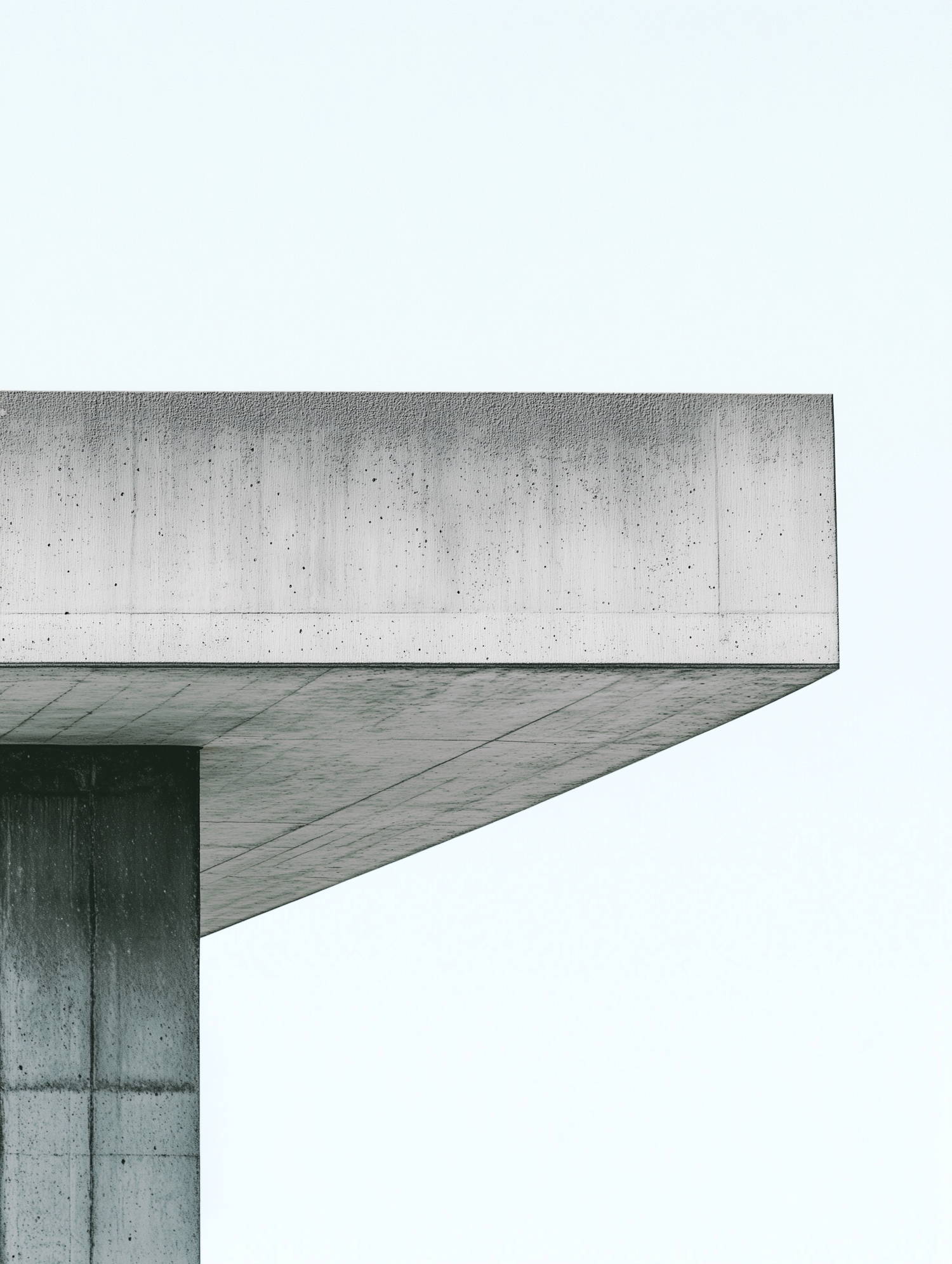 Minimalist concrete architecture with sharp lines against a pale sky, highlighting modern design and texture.