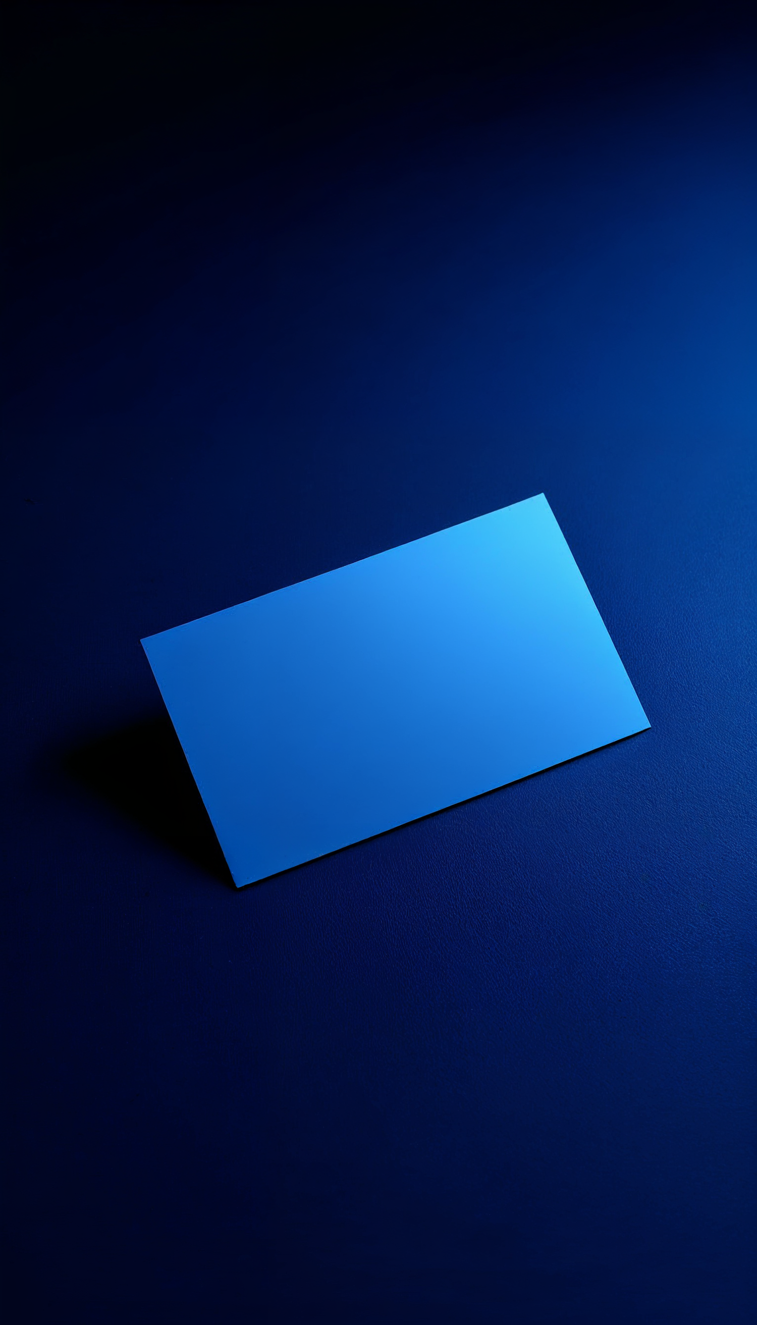 Minimalist blue card on a dark blue surface, creating a modern and calming visual effect.