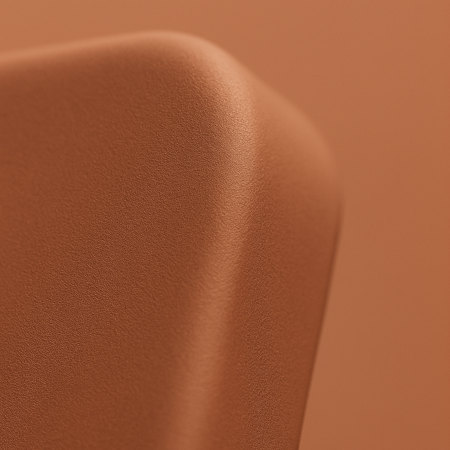Close-up of a smooth, curved brown surface with a matte texture, blending into a minimalist brown background.