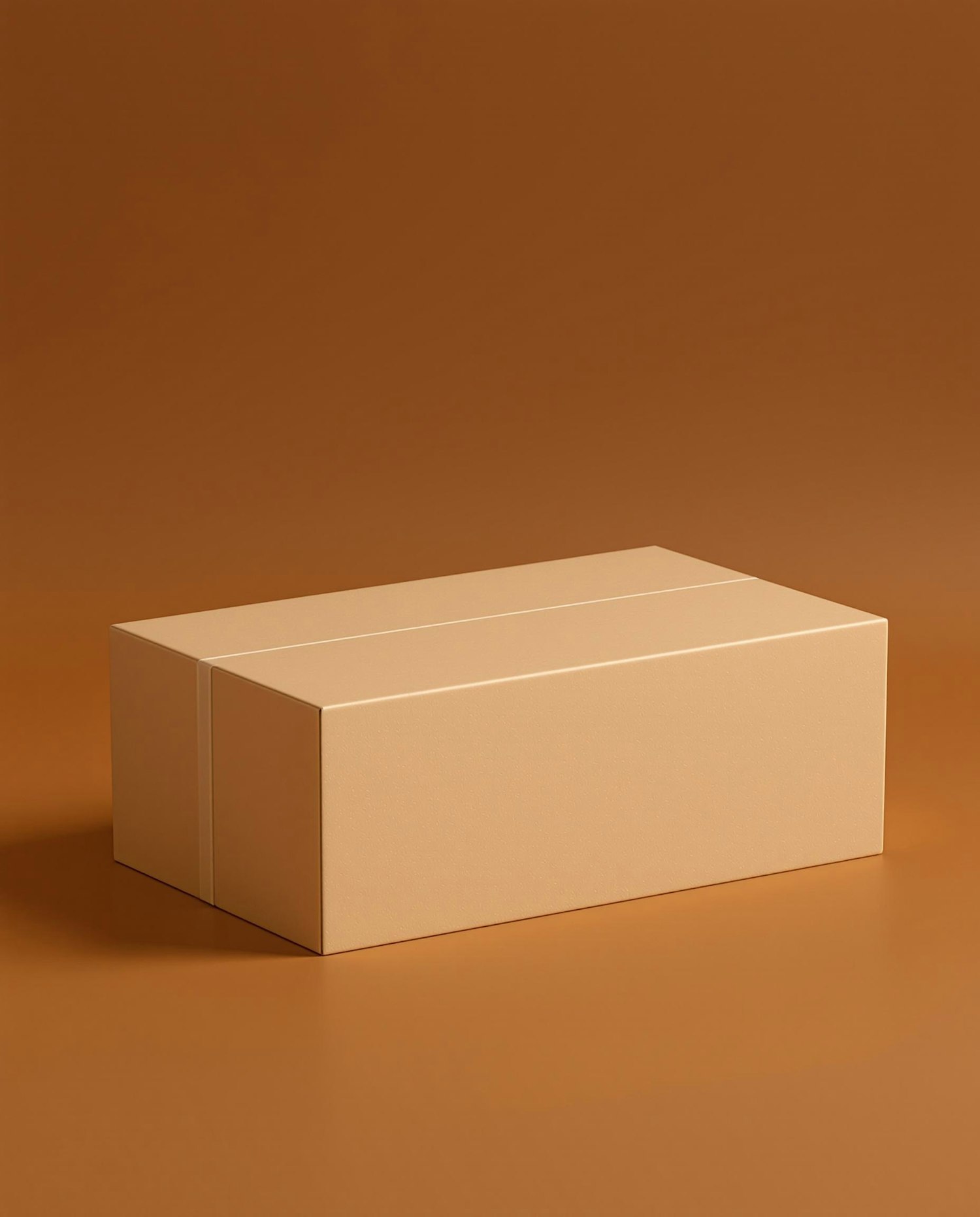 Minimalist beige cardboard box on a warm brown background, perfect for packaging or branding concepts.