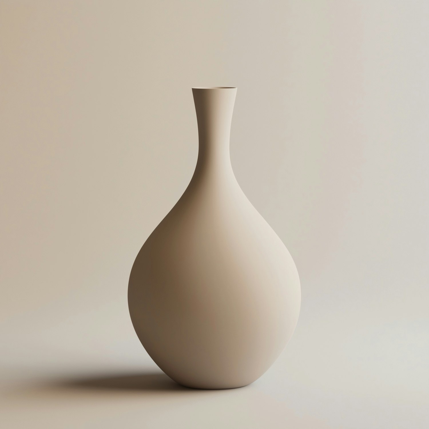 Minimalist ceramic vase with a matte finish, bulbous base, and narrow neck against a neutral beige background. Simple and elegant design.