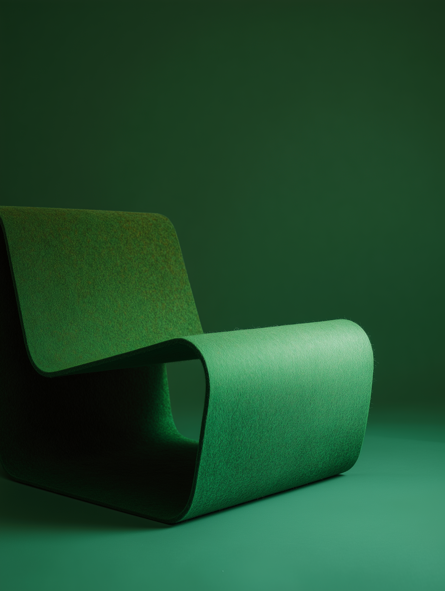 Minimalist green chair with a sleek, continuous design against a matching green background, showcasing modern aesthetics.