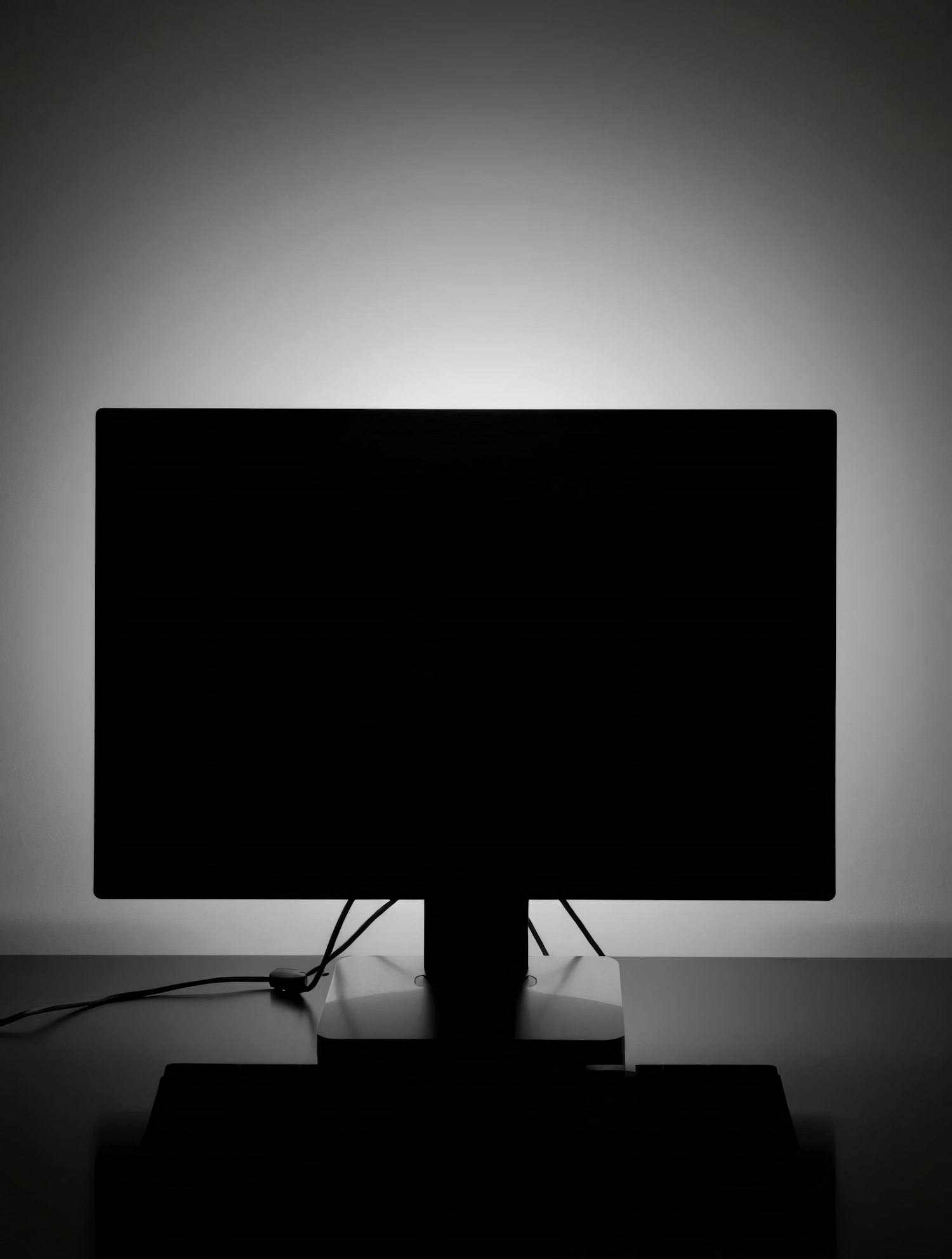 A sleek silhouette of a computer monitor against a softly lit background, showcasing minimalist design and modern aesthetics.