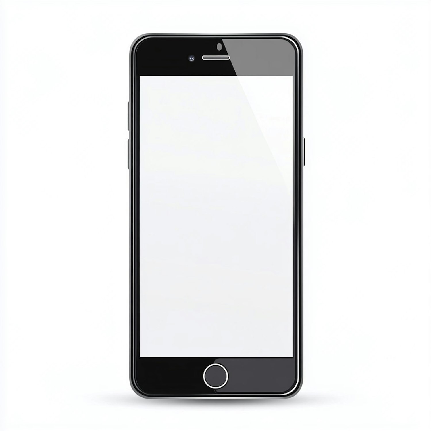 Minimalist black smartphone with a blank screen, circular home button, and sleek design on a white background.