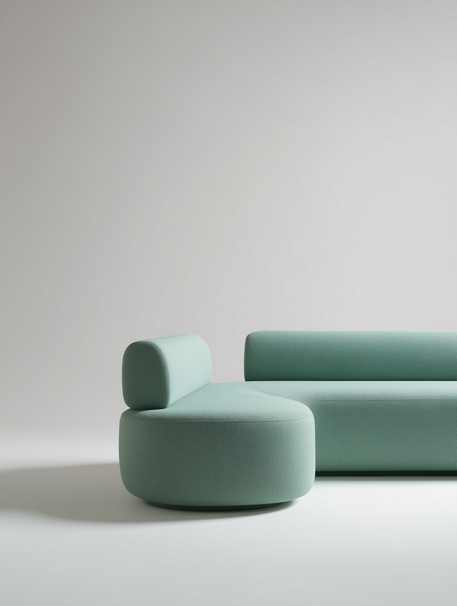 Minimalist pastel green sofa set with rounded edges and textured fabric, perfect for modern interiors.