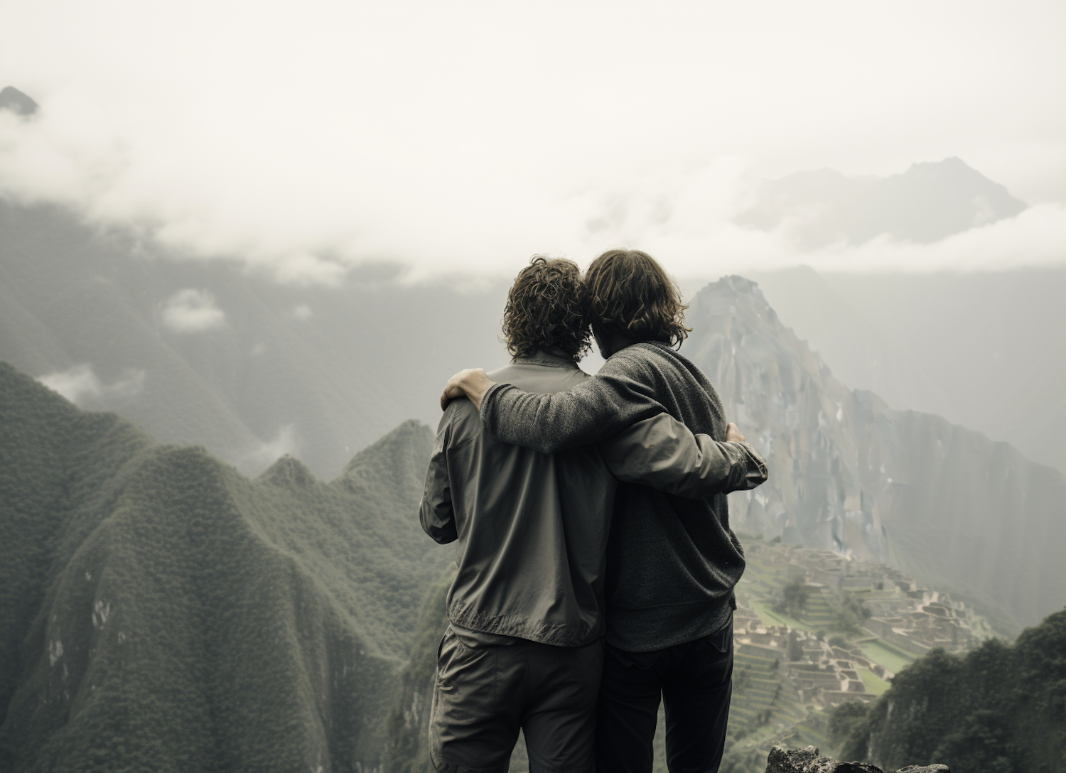 Serenity in the Mountains: A Family Embrace Amidst Ancient Ruins