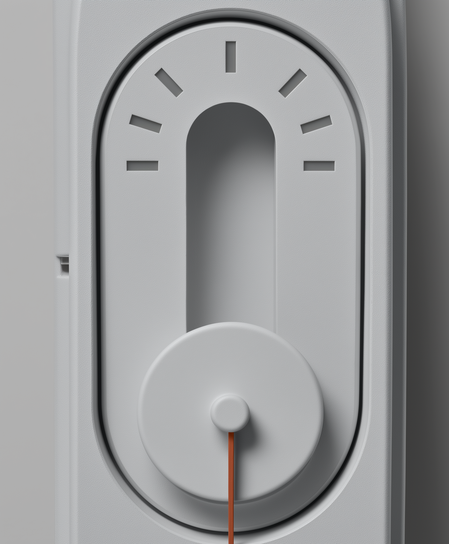 Minimalist gray design with a semi-circular gauge, circular dial, and orange line. Sleek and modern aesthetic with clean lines.