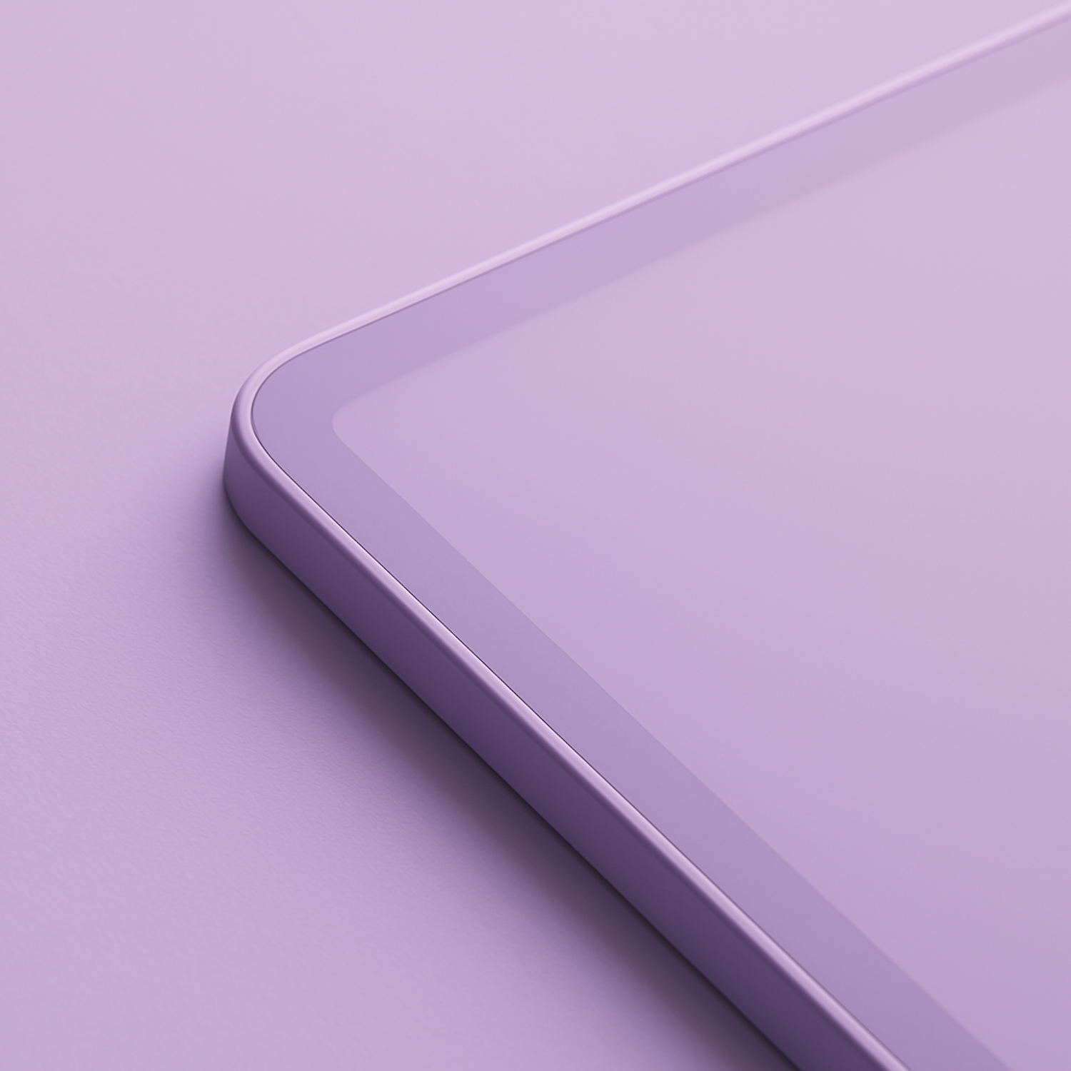 Close-up of a sleek tablet or smartphone corner with rounded edges, set against a soft lavender background for a minimalist vibe.