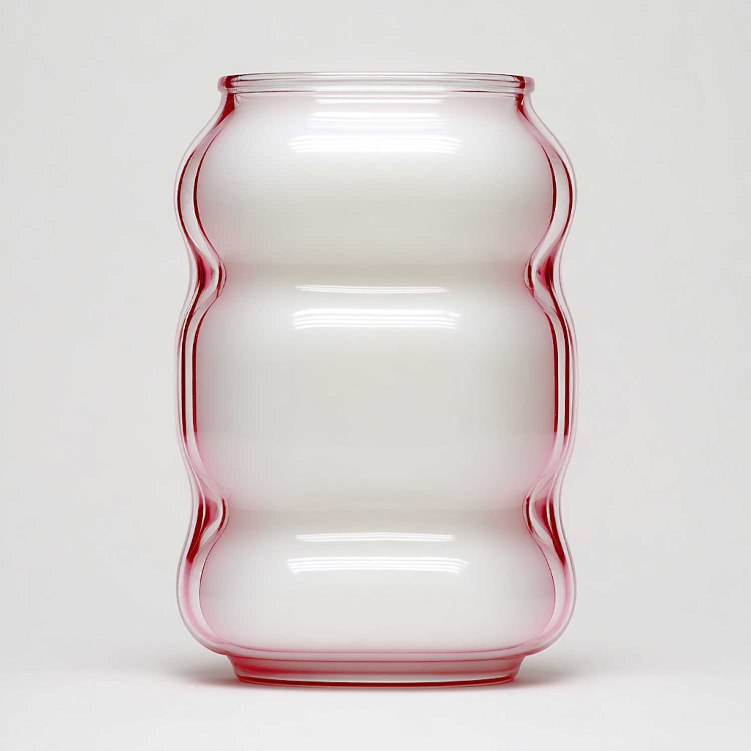 A modern glass vase with a pink-tinted wavy design and a white interior, perfect for contemporary decor.