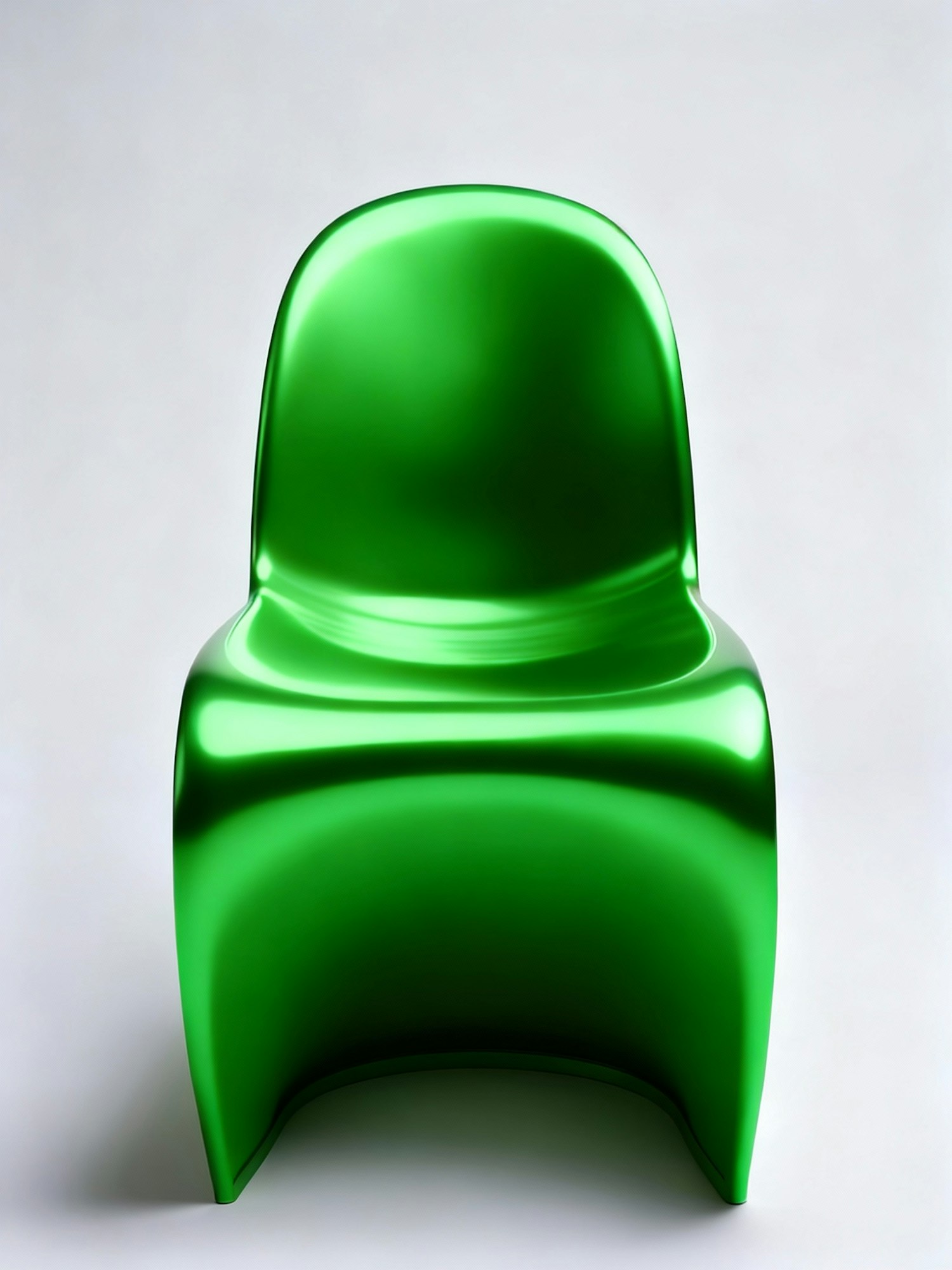 A modern green chair with a glossy finish and a sleek, curved design, perfect for contemporary interiors.