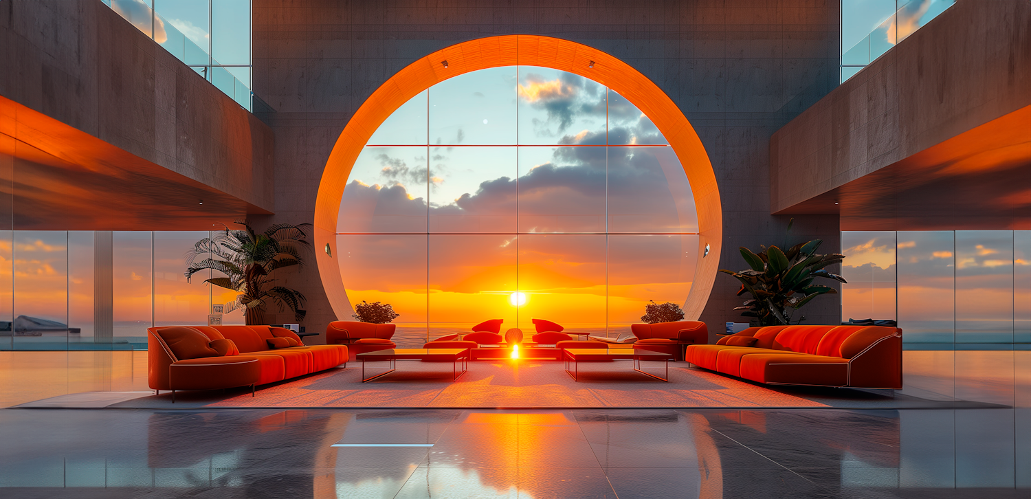Modern Interior with Sunset View