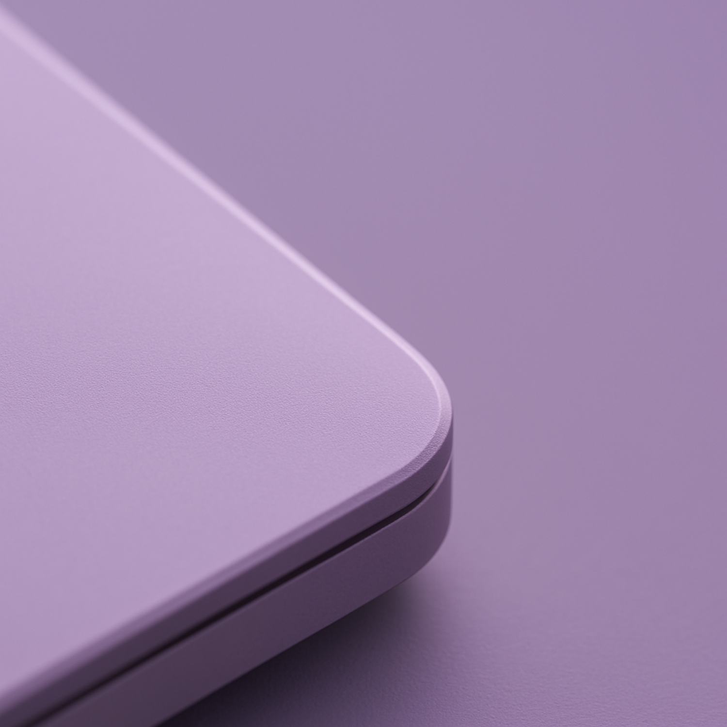 Close-up of a lavender laptop corner with rounded edges and a matte finish, set against a matching lavender background.