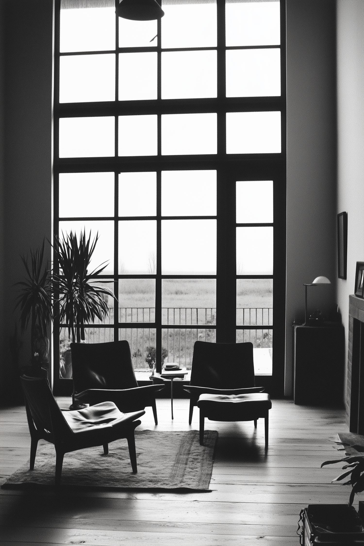 Modern Living Room with Grid-Patterned Window