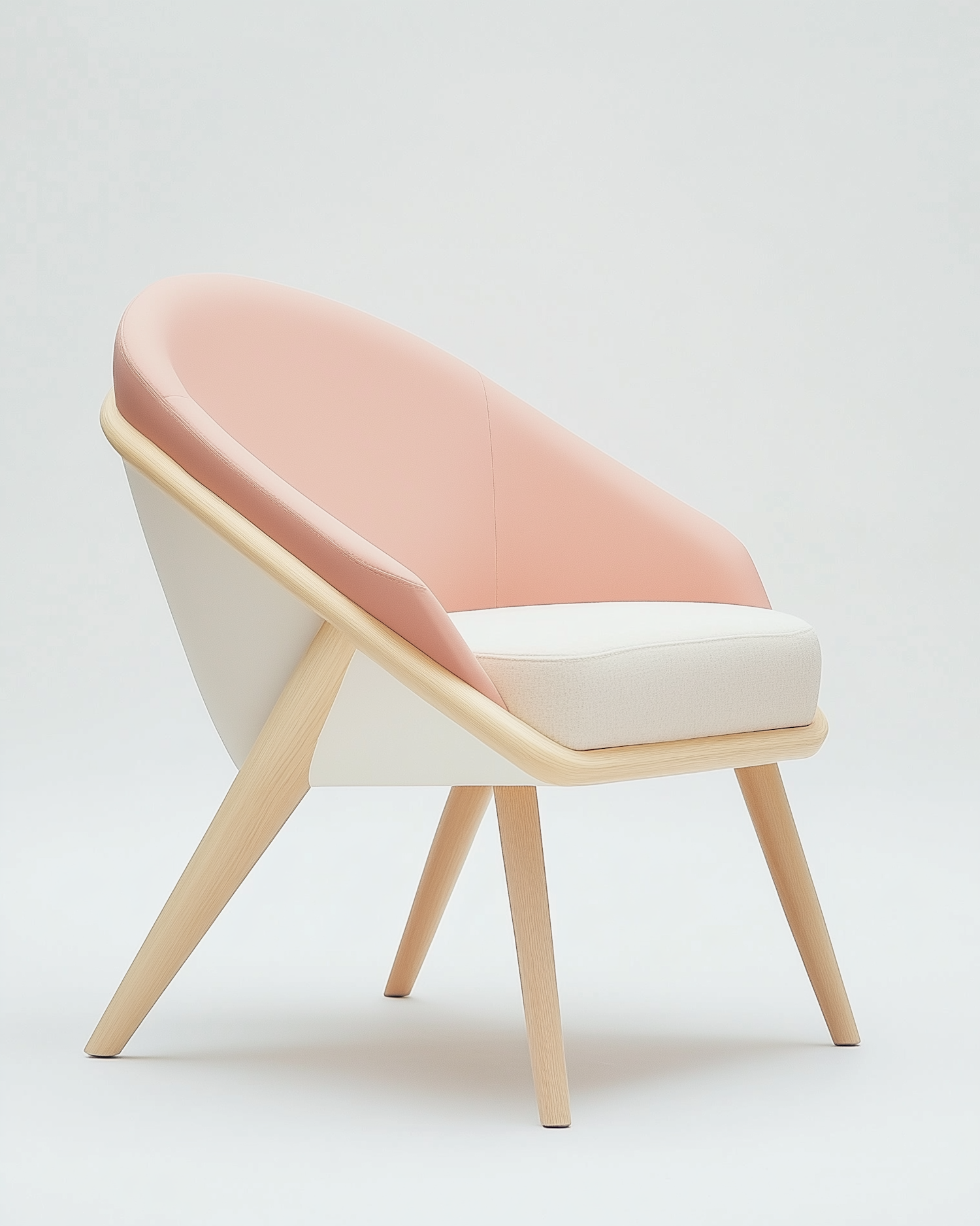 Minimalist pastel pink and white chair with a light wood frame, perfect for modern interiors. Stylish, comfortable, and contemporary.