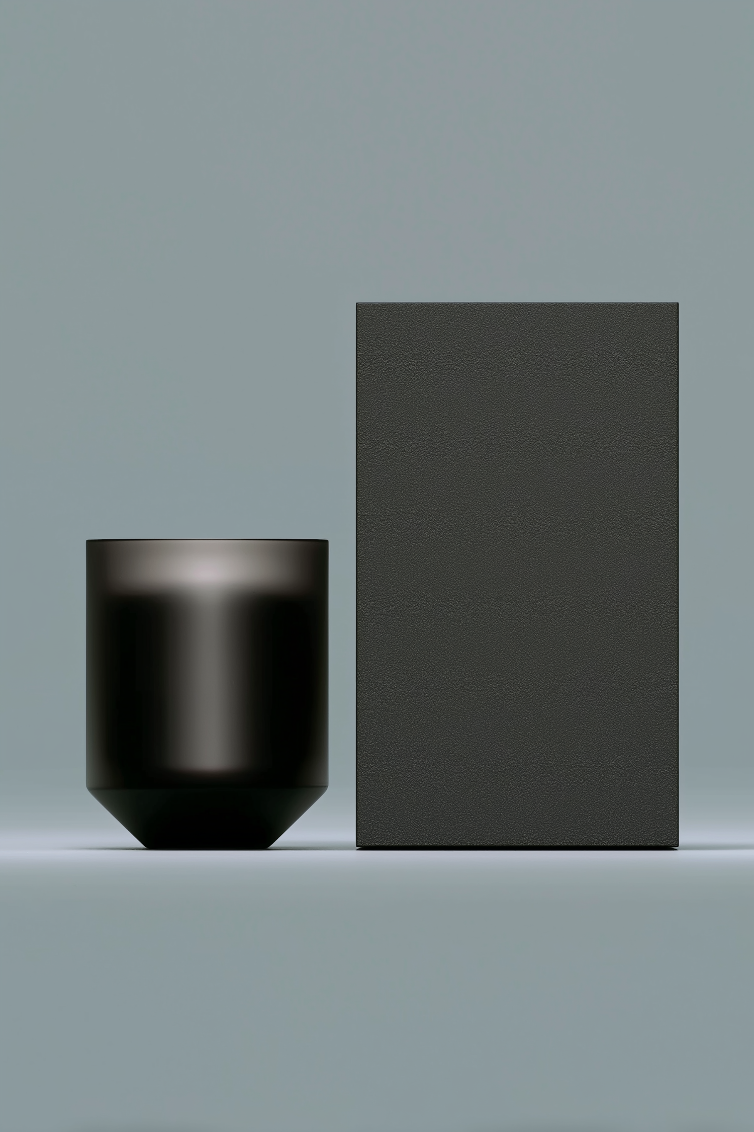 Minimalist black cylindrical and rectangular objects on a light gray background, showcasing modern design and clean lines.