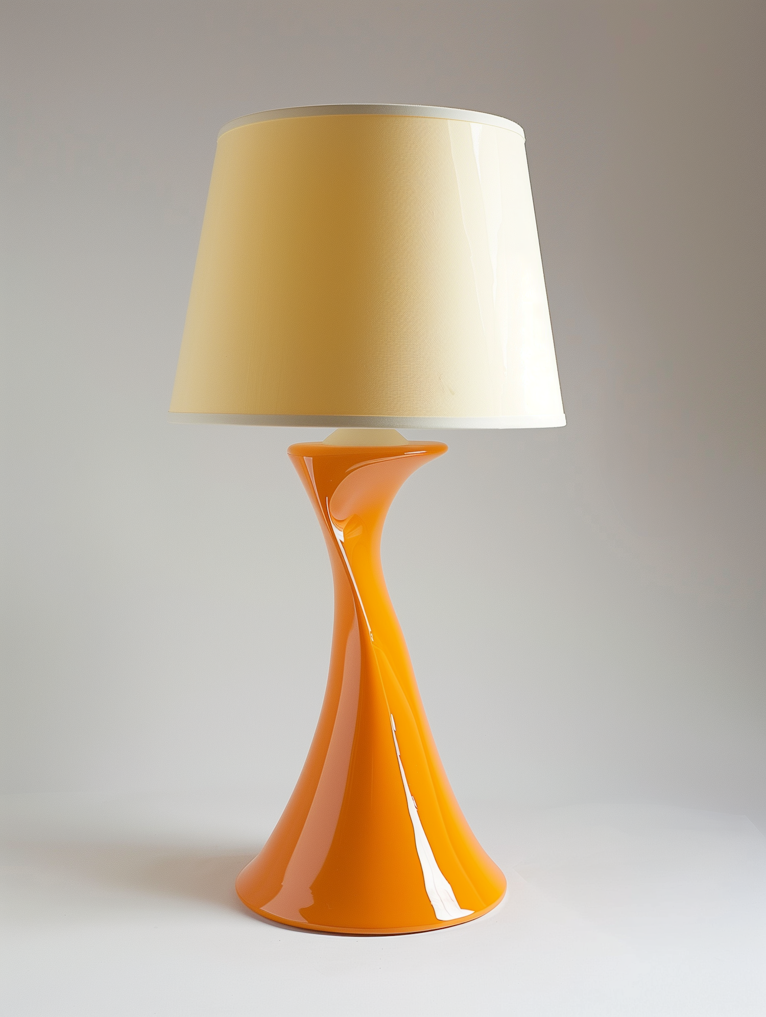 Stylish orange table lamp with a curvy base and beige shade, perfect for adding a modern touch to your home decor.
