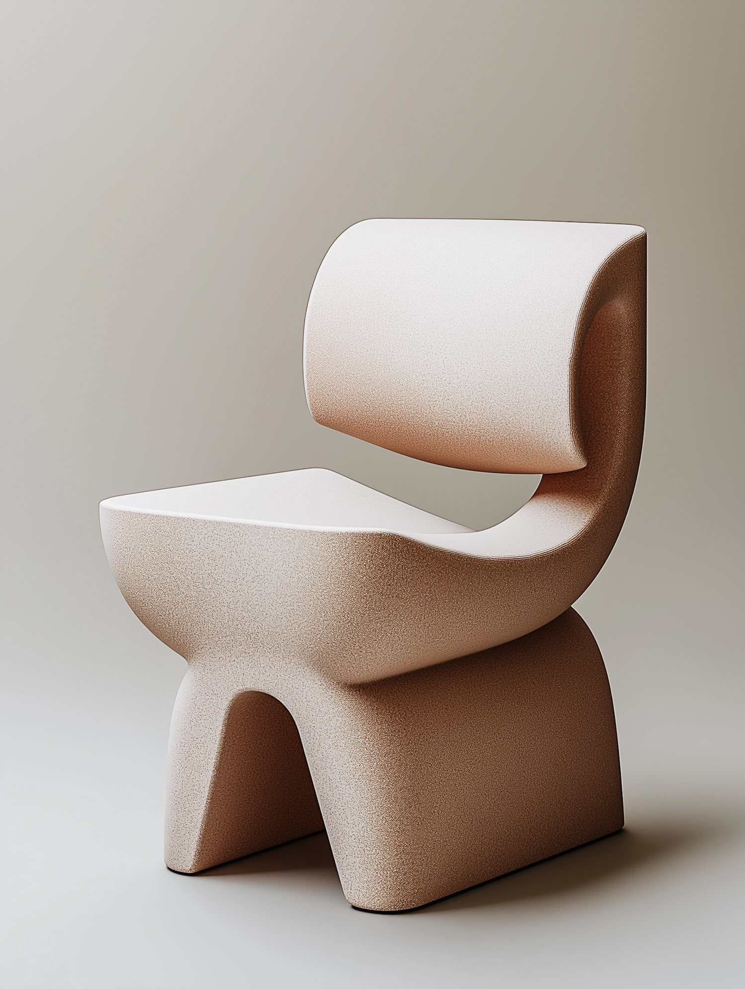 Modern sculptural chair with a smooth, flowing design in light beige. Perfect for contemporary interiors.