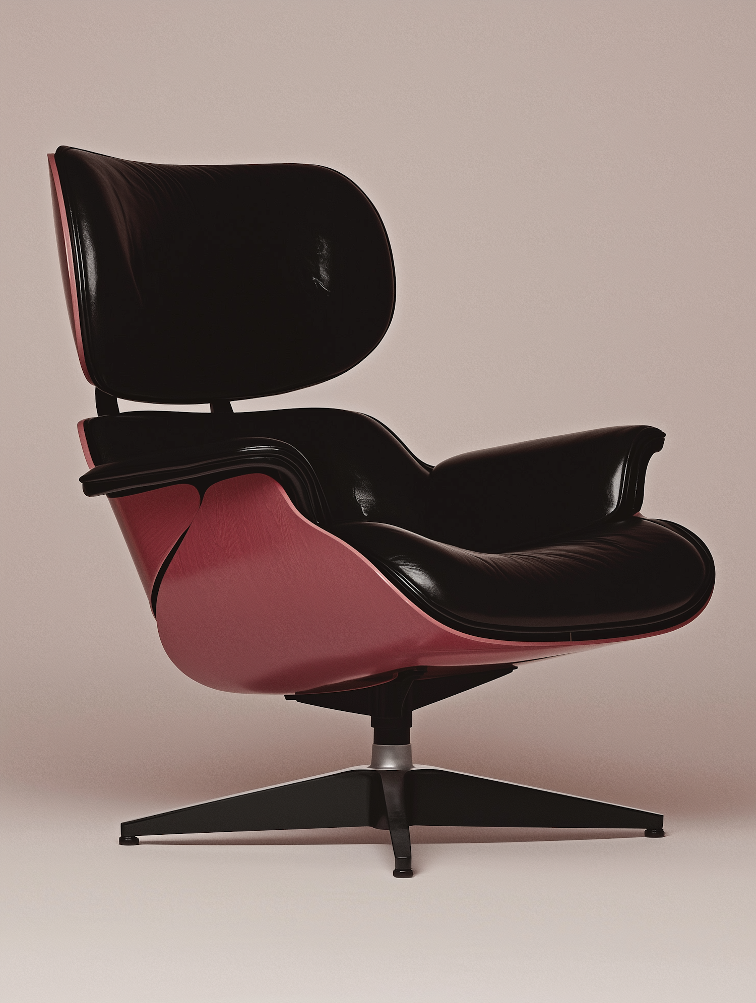 Sleek black and red modern chair with glossy leather upholstery and a sturdy metal base, set against a neutral background.