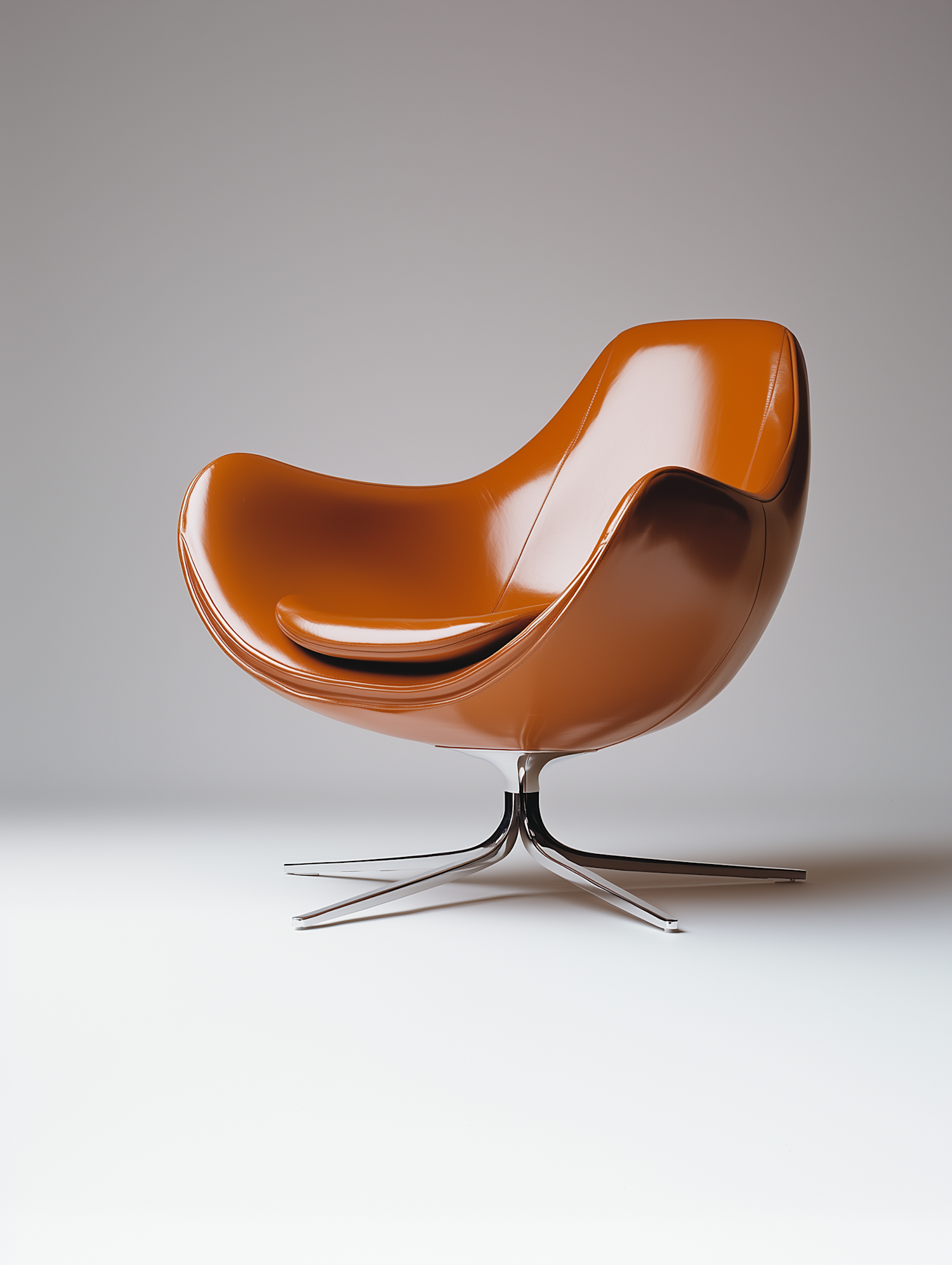 Sleek modern chair with glossy brown finish and metallic base, perfect for contemporary interiors. Ergonomic and stylish design.