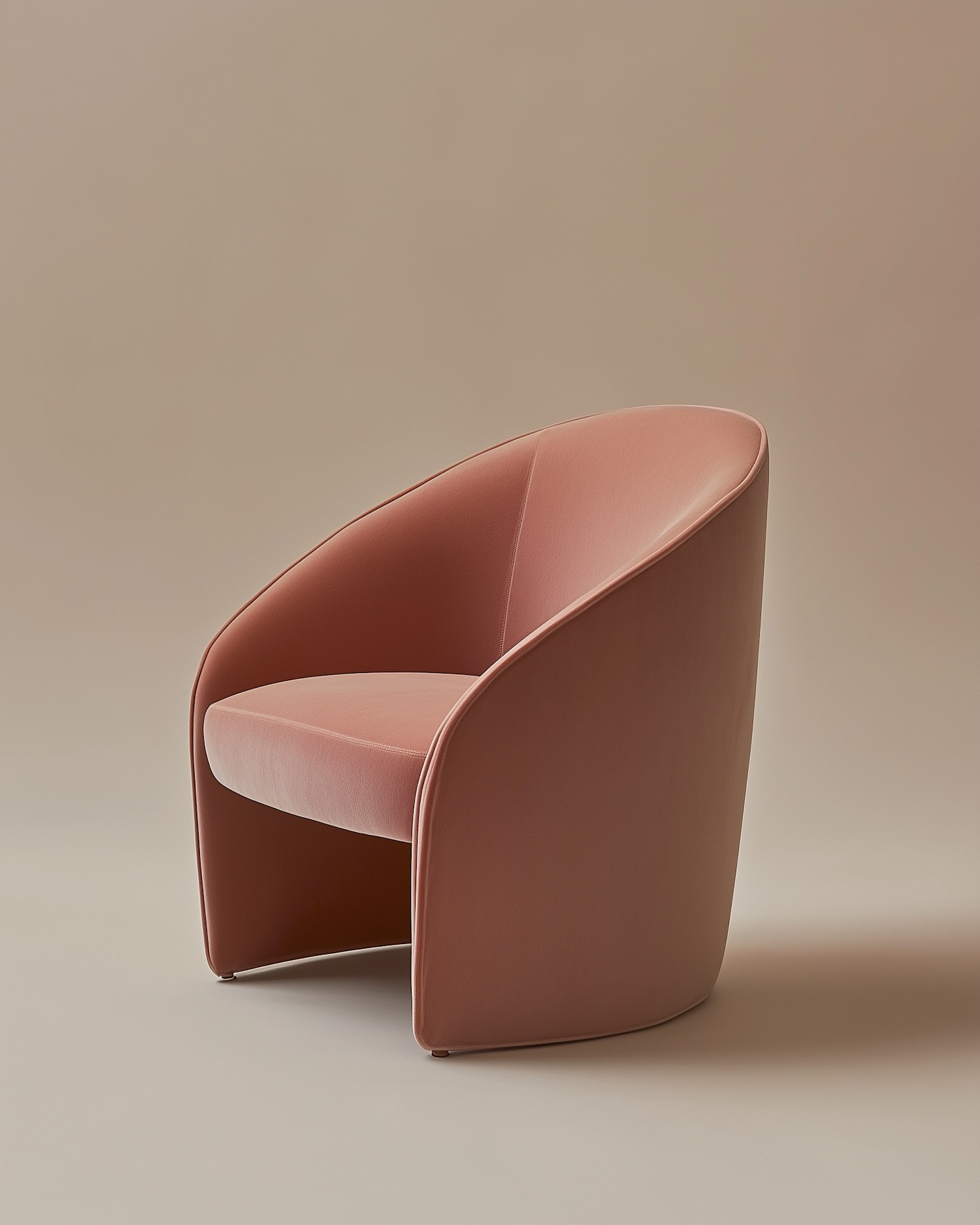 Minimalist terracotta armchair with a curved design, perfect for modern interiors. Warm tones and sleek lines make it a stylish choice.
