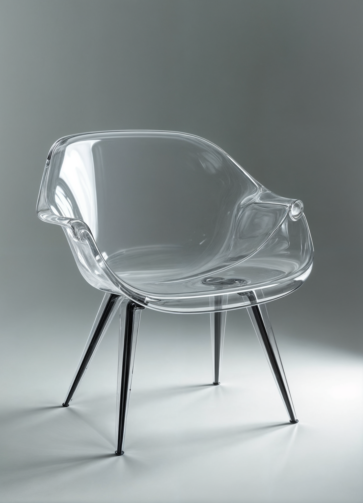 A sleek transparent chair with a clear acrylic seat and polished metal legs, perfect for modern and minimalist interiors.