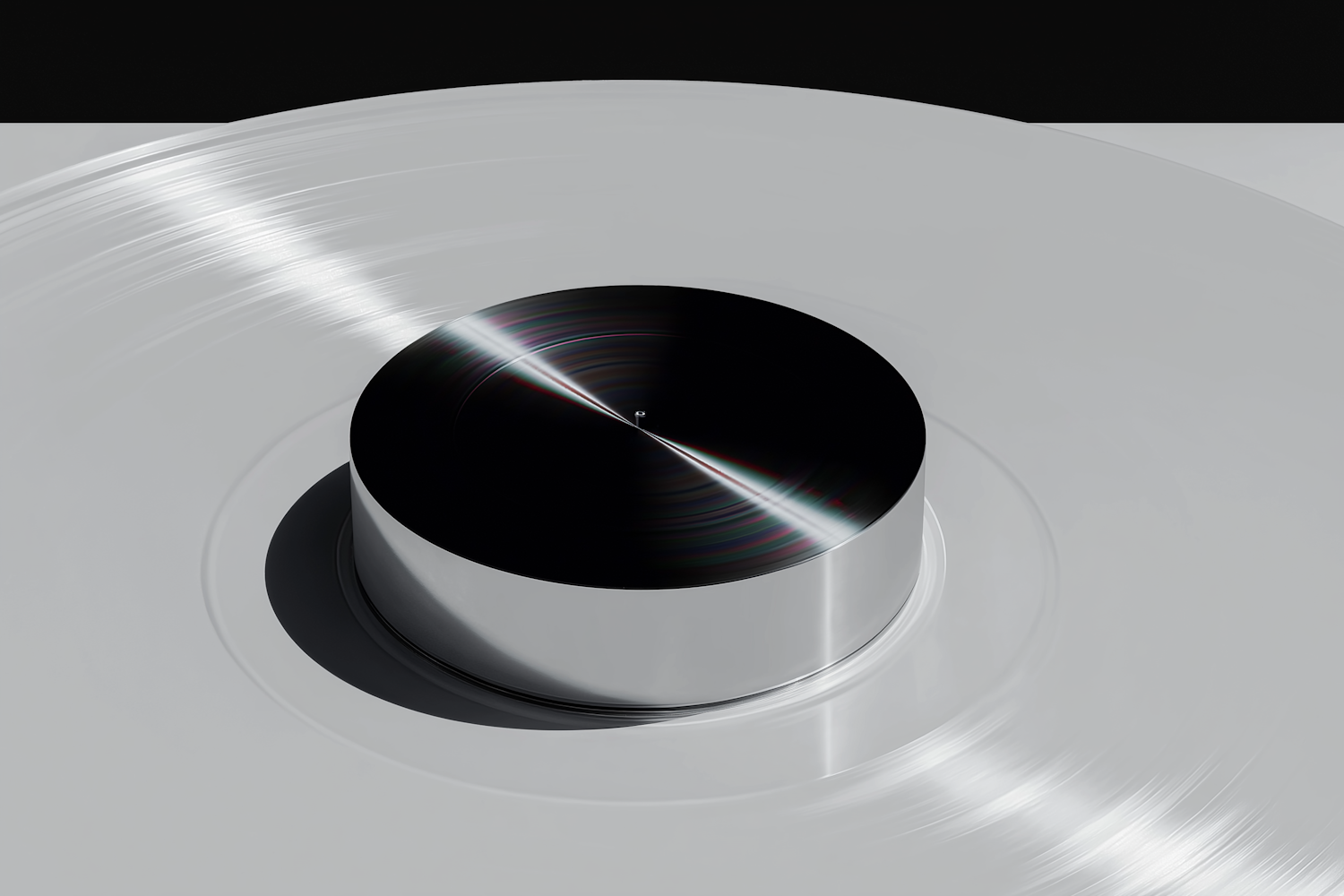 A sleek, modern turntable with a polished metallic finish and dynamic lighting, showcasing its precision and contemporary design.