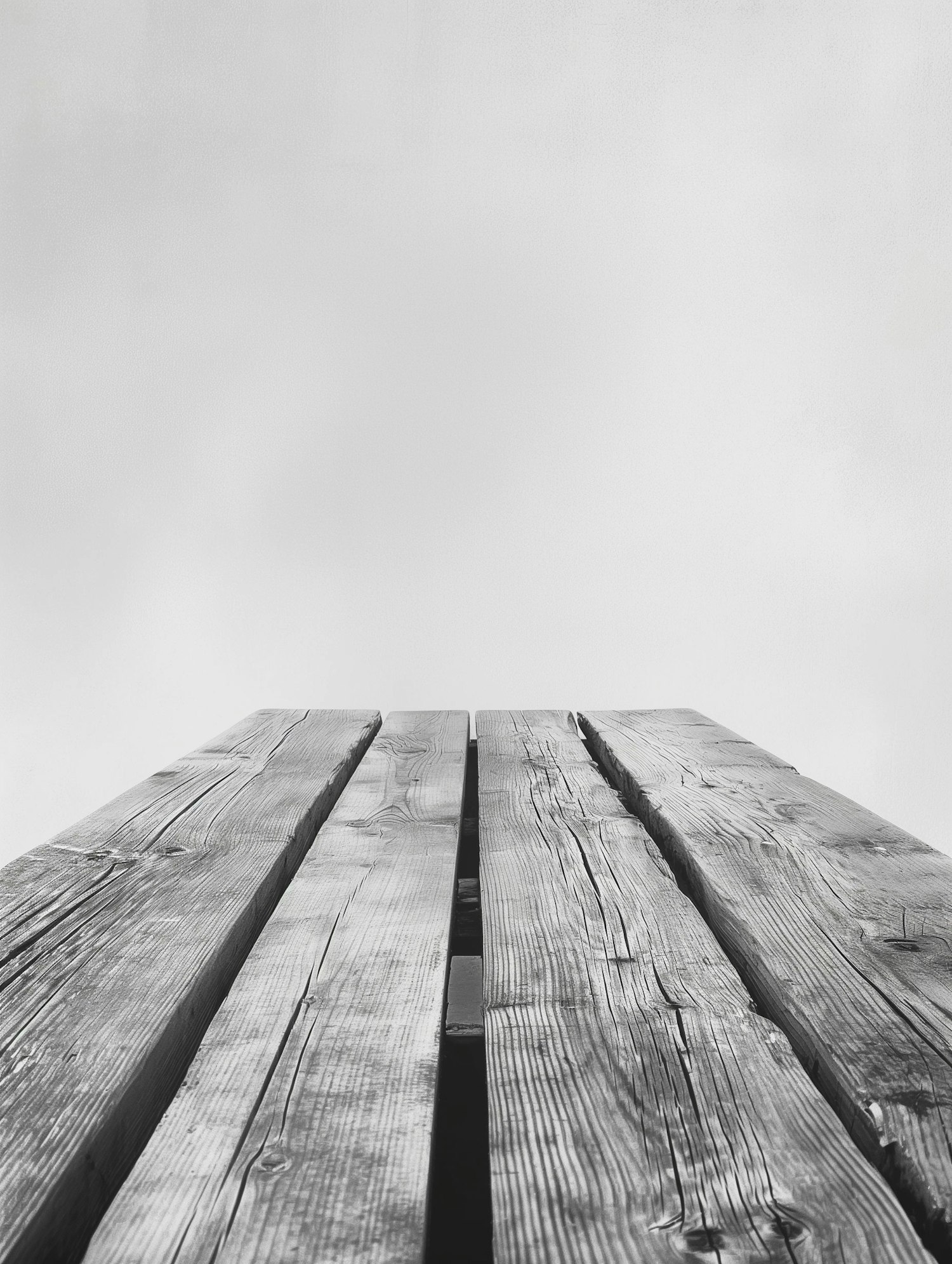 Close-up of weathered wooden planks with natural grain patterns against a minimalist gray background.