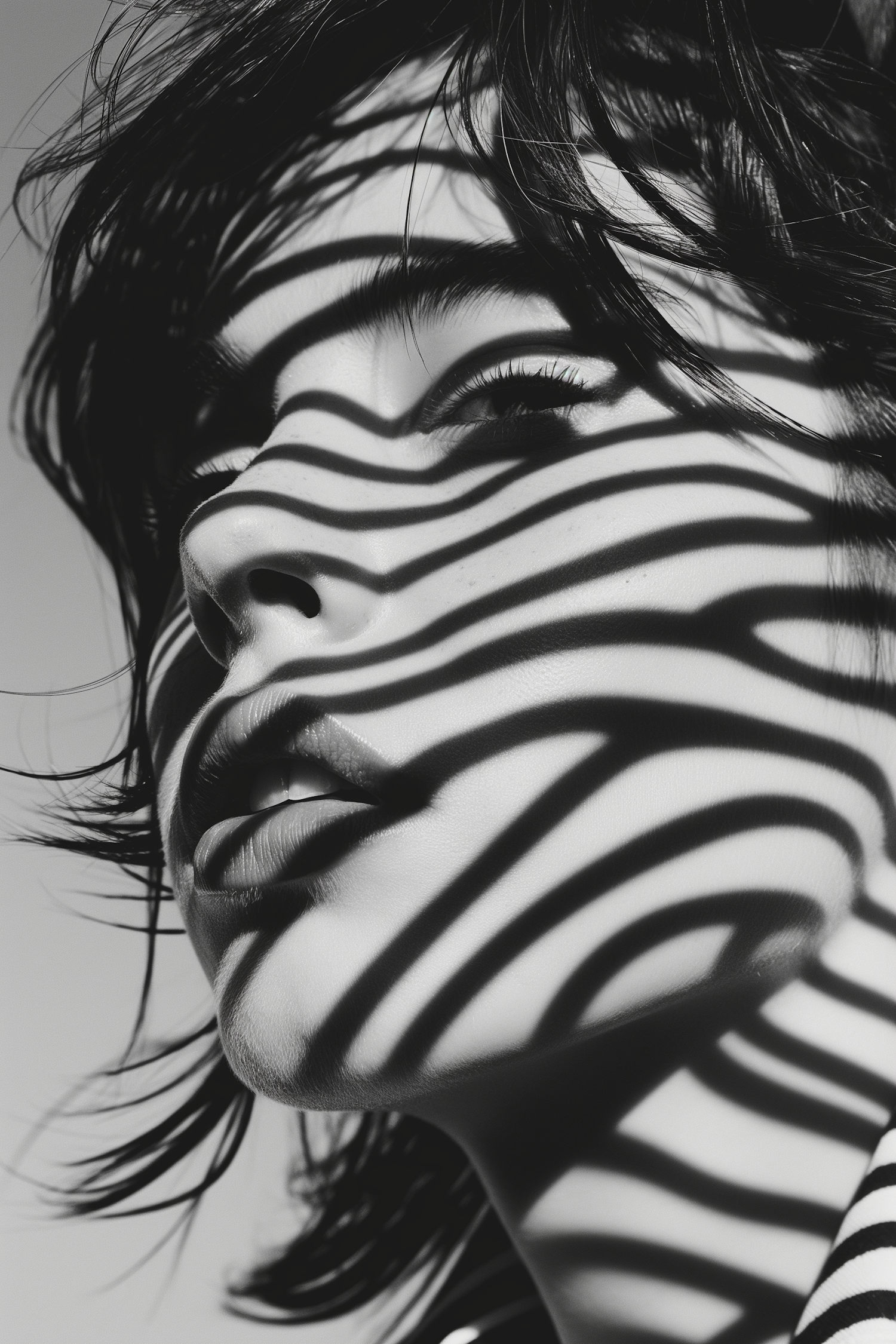 Monochrome Zebra-Striped Shadow Portrait