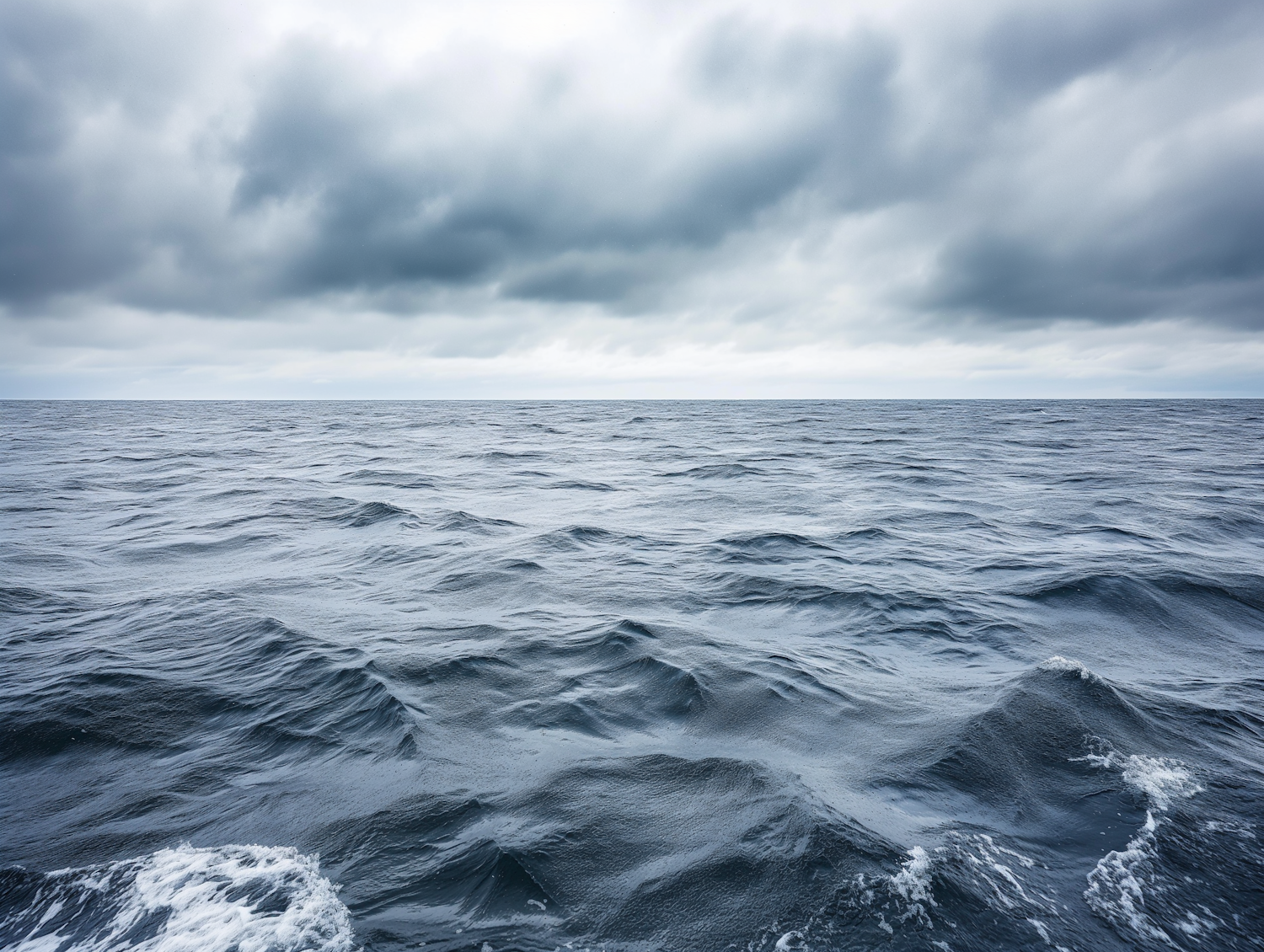 A serene ocean scene with gentle waves under a cloudy sky, capturing the vastness and tranquility of the sea.
