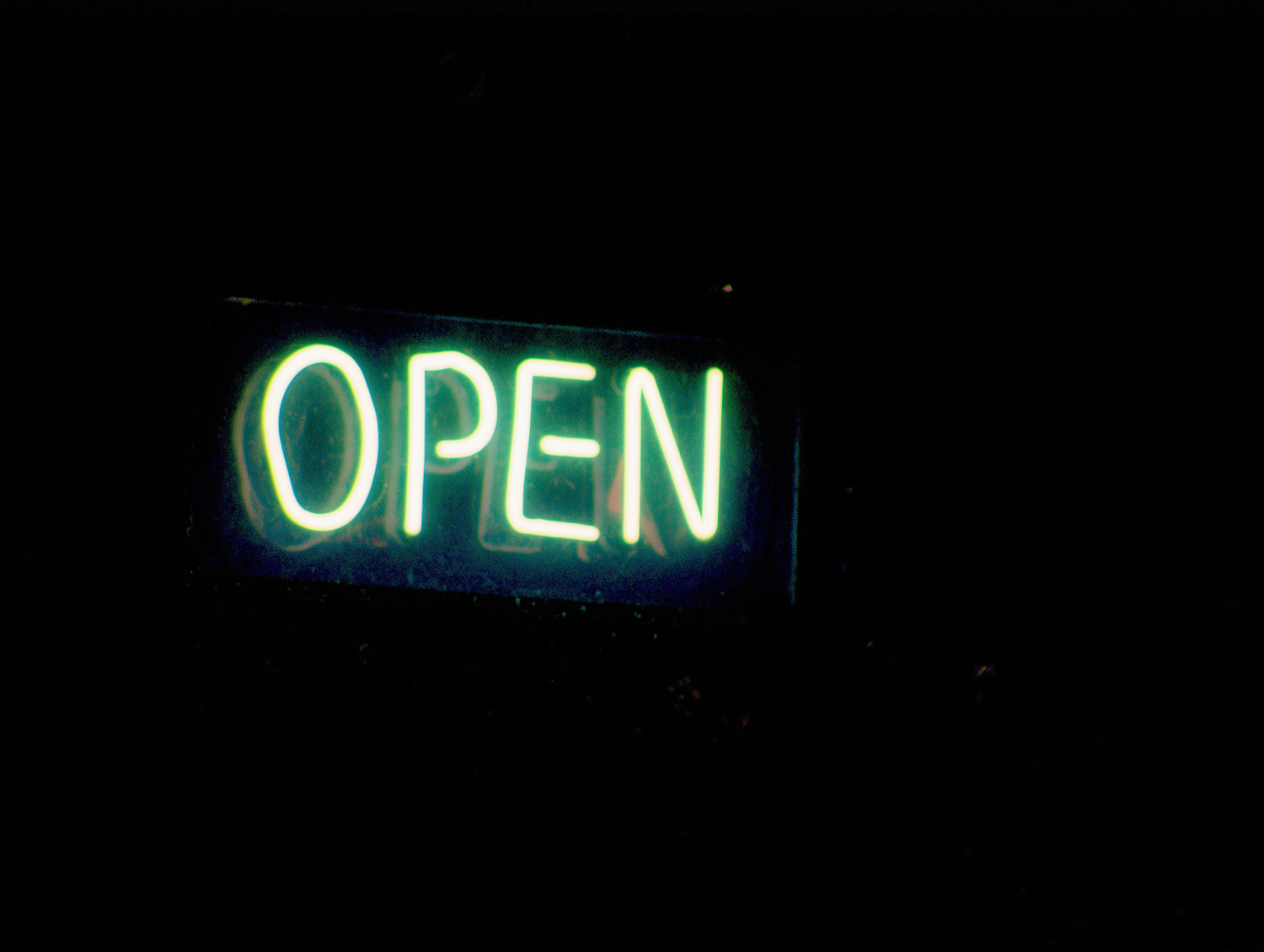 Bright green neon 'OPEN' sign glowing against a dark background, perfect for a business or nightlife vibe.