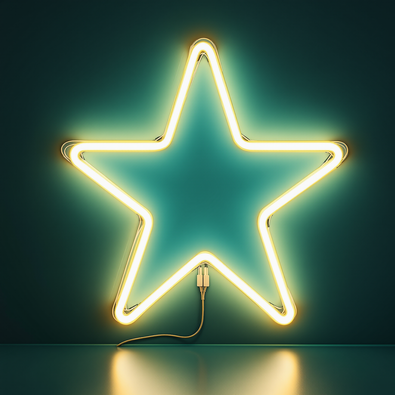 Bright neon star light on a teal wall, glowing warmly with a visible power cord, perfect for modern decor inspiration.