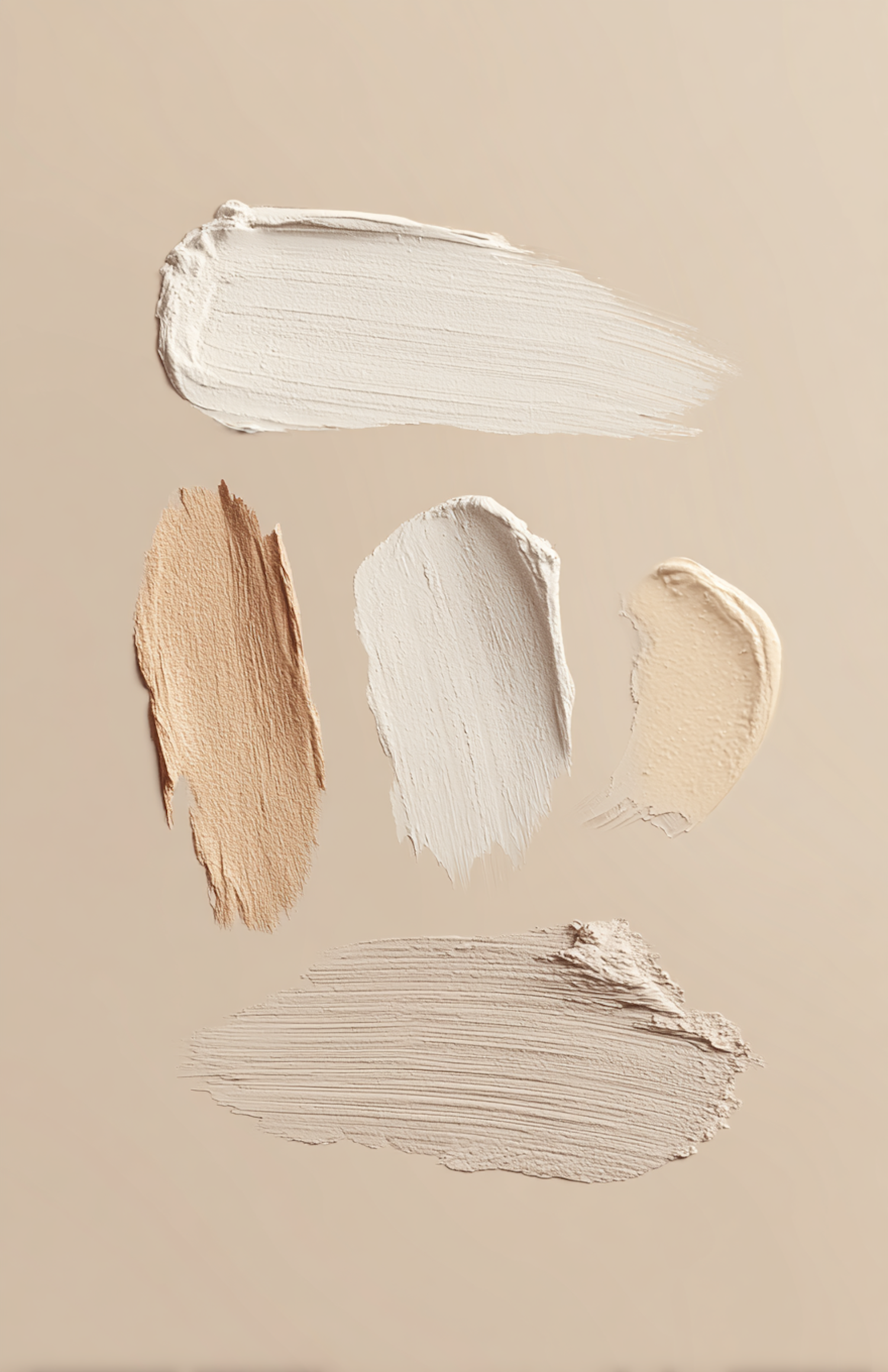 Neutral-toned creamy textures on a beige background showing variants of white, ivory, and tan hues in artistic brushstrokes.