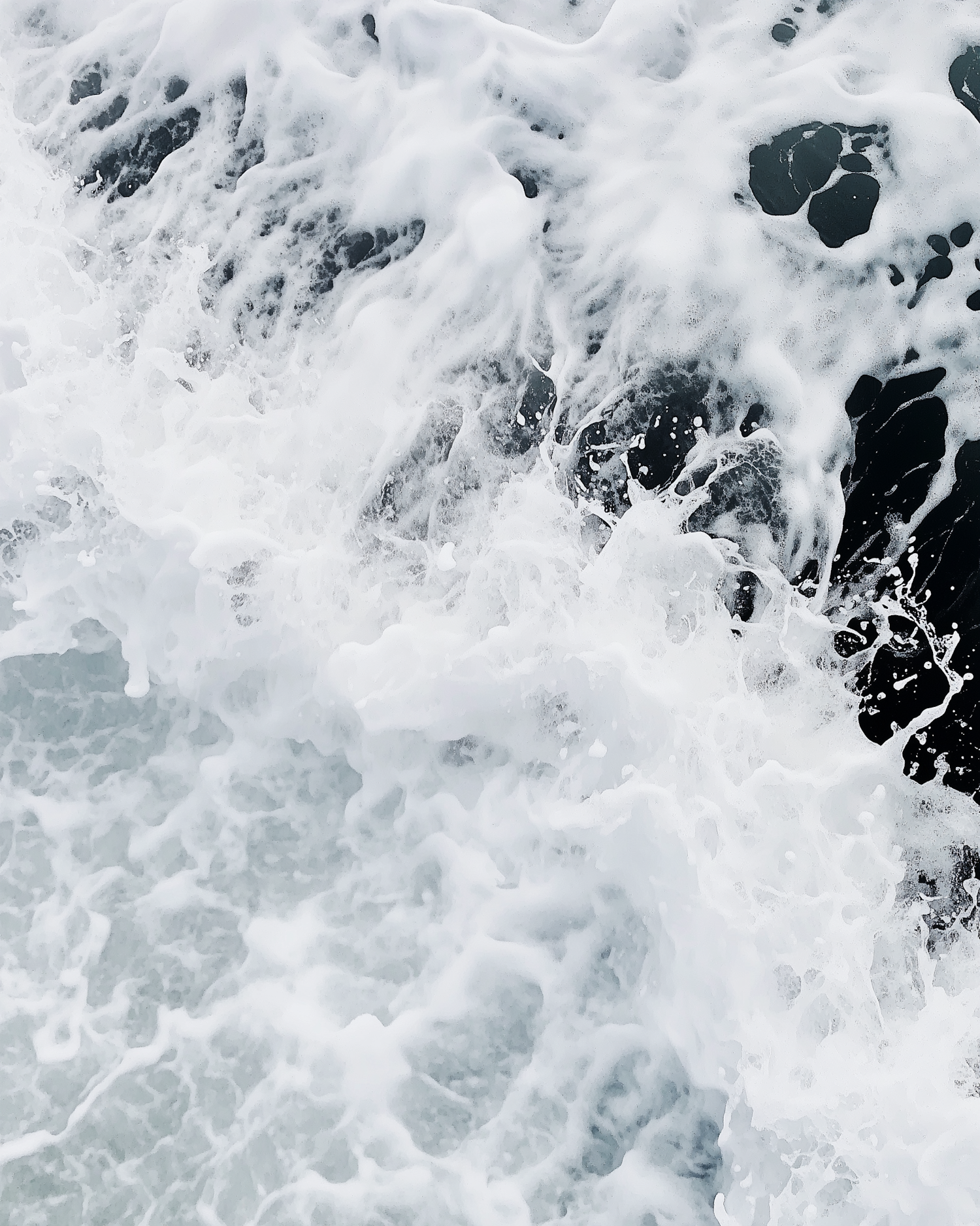 Dynamic close-up of ocean waves crashing into frothy white foam, showcasing the power and beauty of nature's movement.