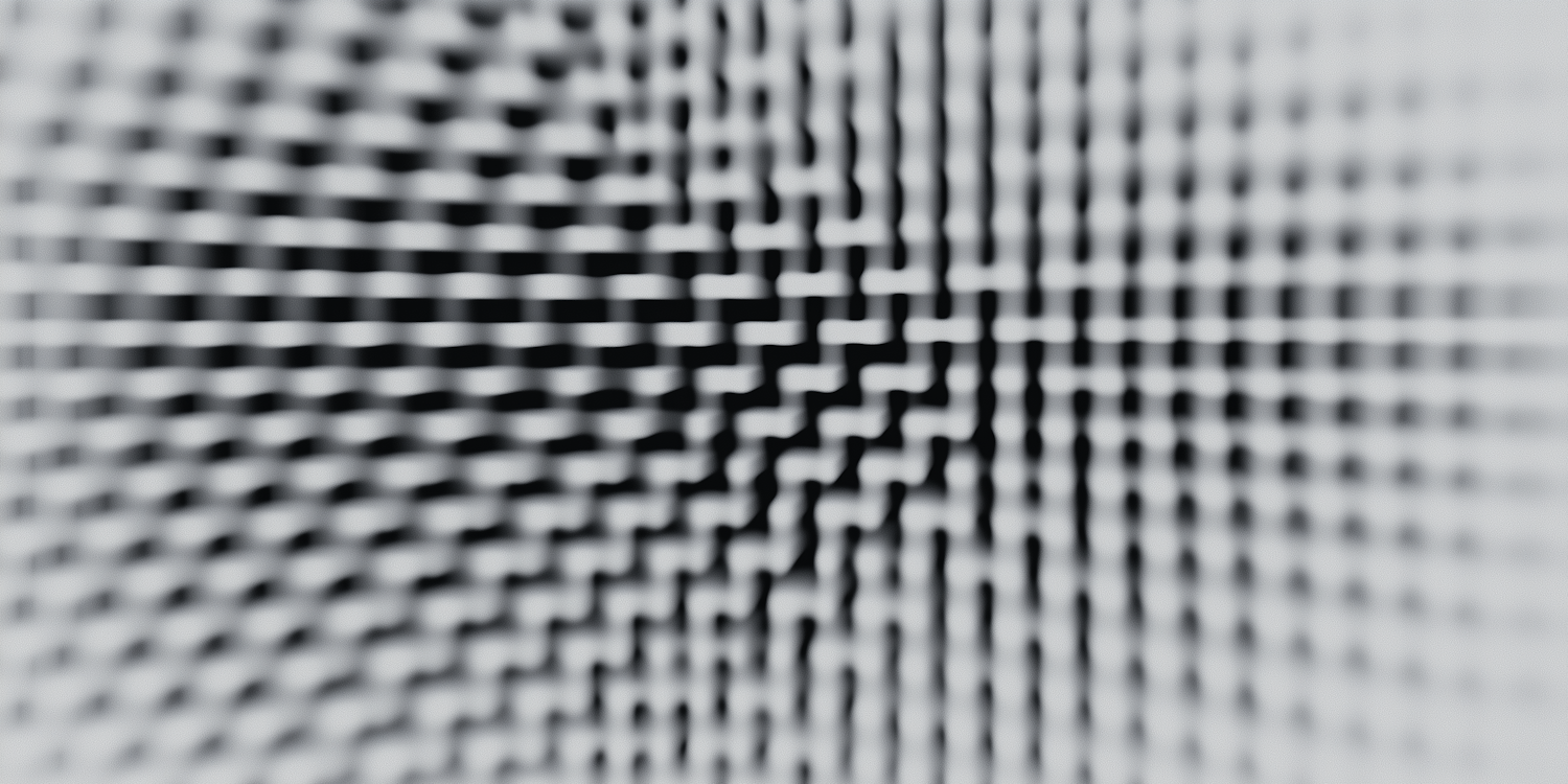 Abstract black and white grid pattern creating a dynamic optical illusion effect with intersecting lines and stark contrast.