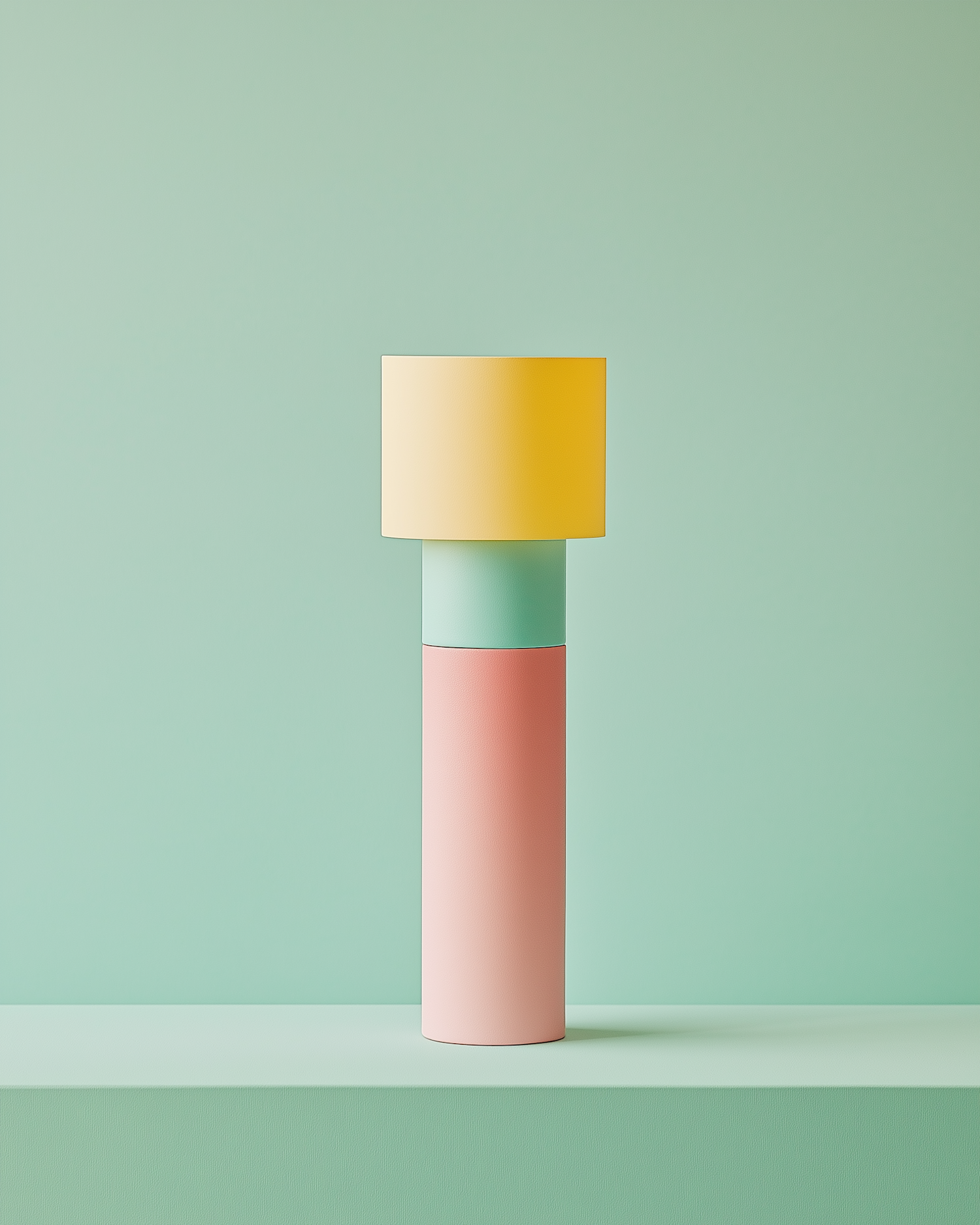 Minimalist pastel cylinder with yellow, mint green, and pink sections on a matching mint green background. Clean and modern design.