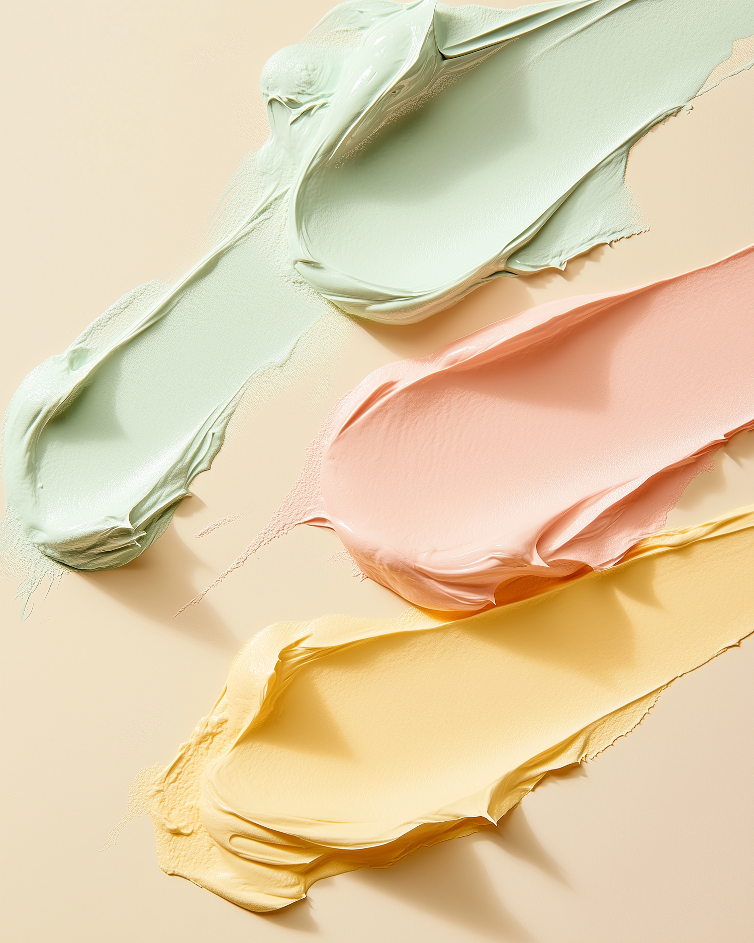 Pastel smears of mint green, peach, and yellow paint on a neutral background, creating a soothing and artistic composition.