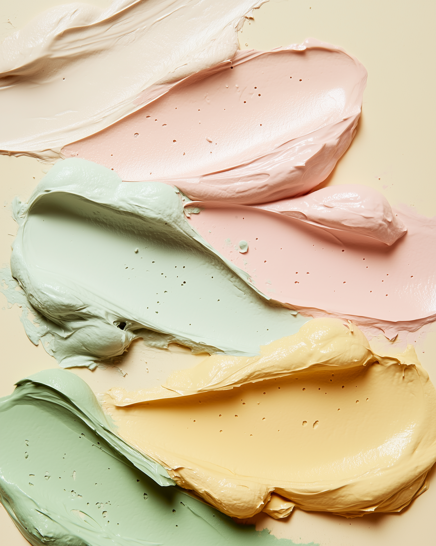 Pastel-colored creamy smears with glossy texture and air bubbles, creating a soothing and artistic visual effect.