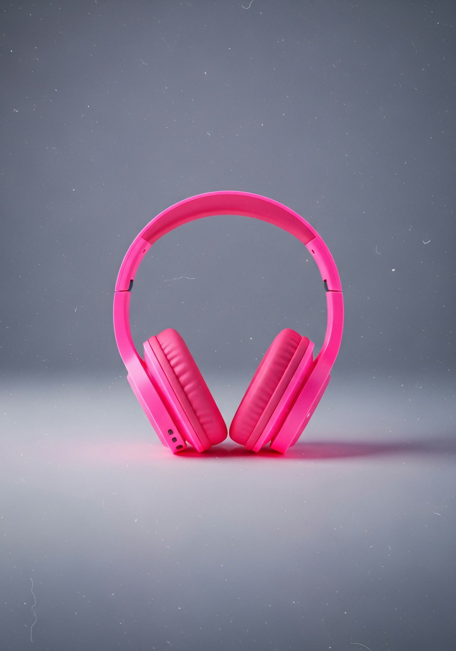 Bright pink over-ear headphones on a gray background, showcasing a sleek and modern design with padded ear cups for comfort.