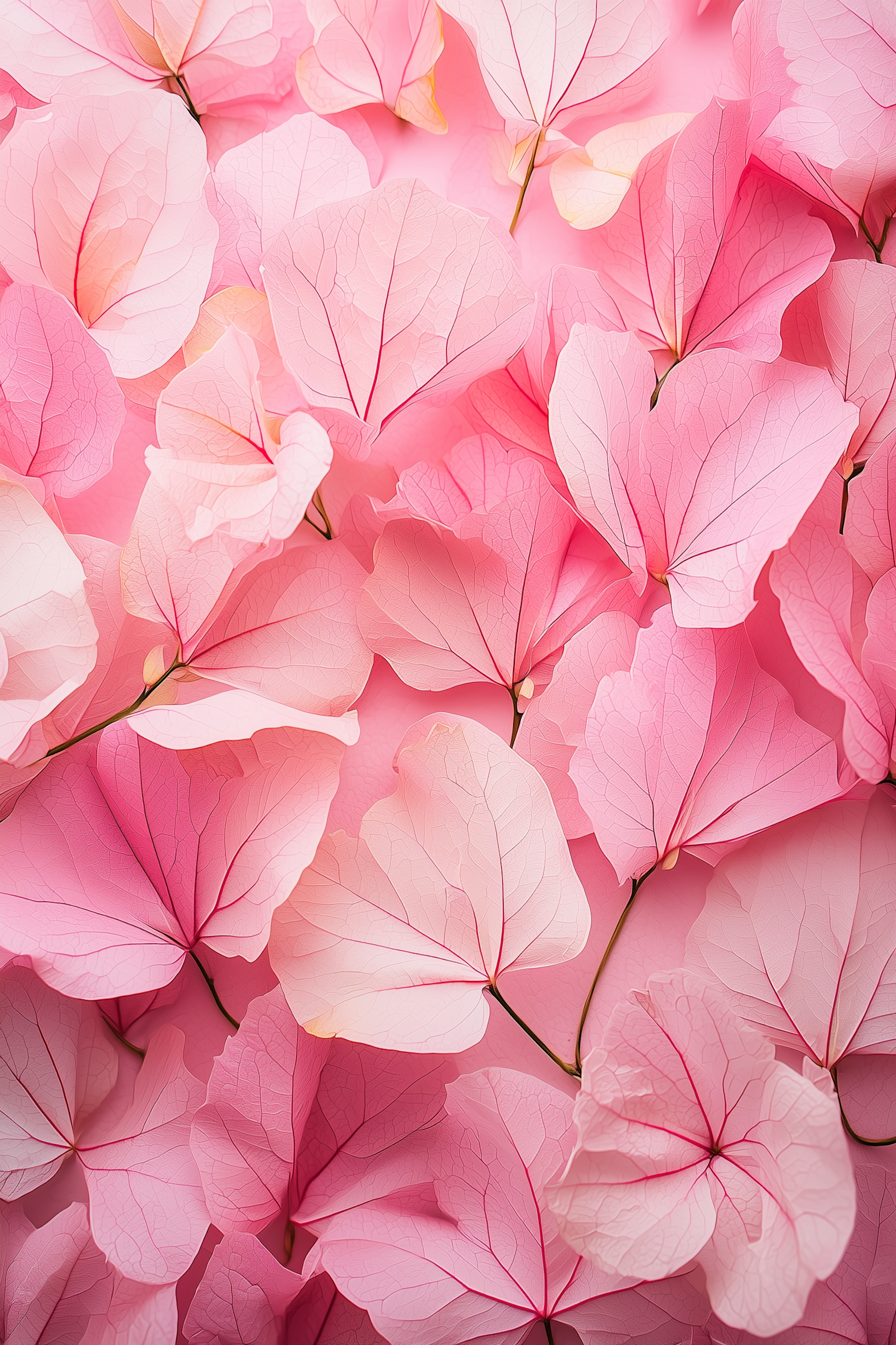 Delicate pink leaves with intricate veins form a soft, textured pattern on a matching pink background. Perfect for nature-inspired designs.