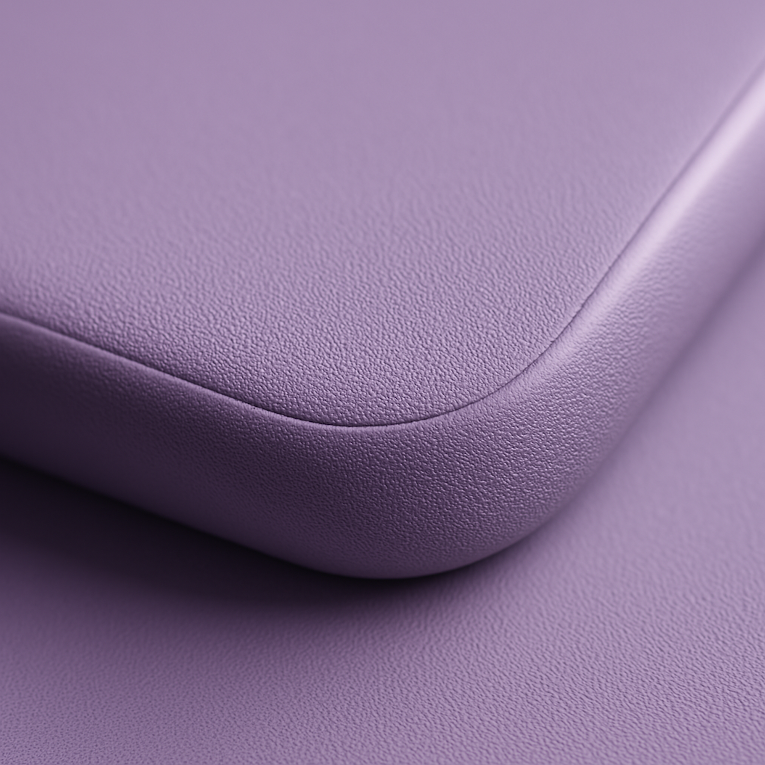 Close-up of a textured purple surface with a rounded corner, showcasing fine grain details and a soft, monochromatic aesthetic.