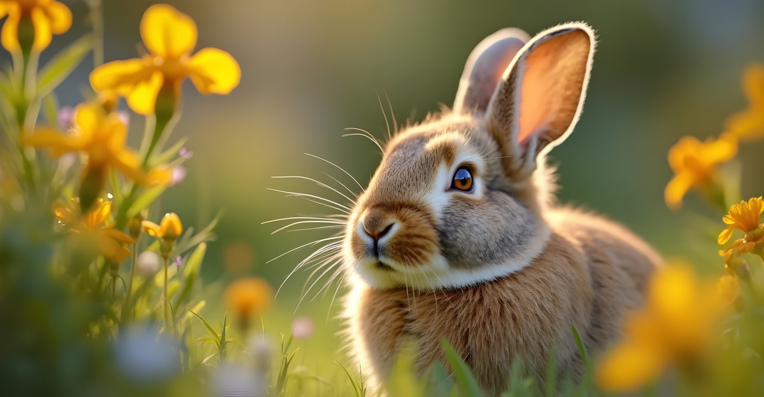 Rabbit Among Yellow Flowers