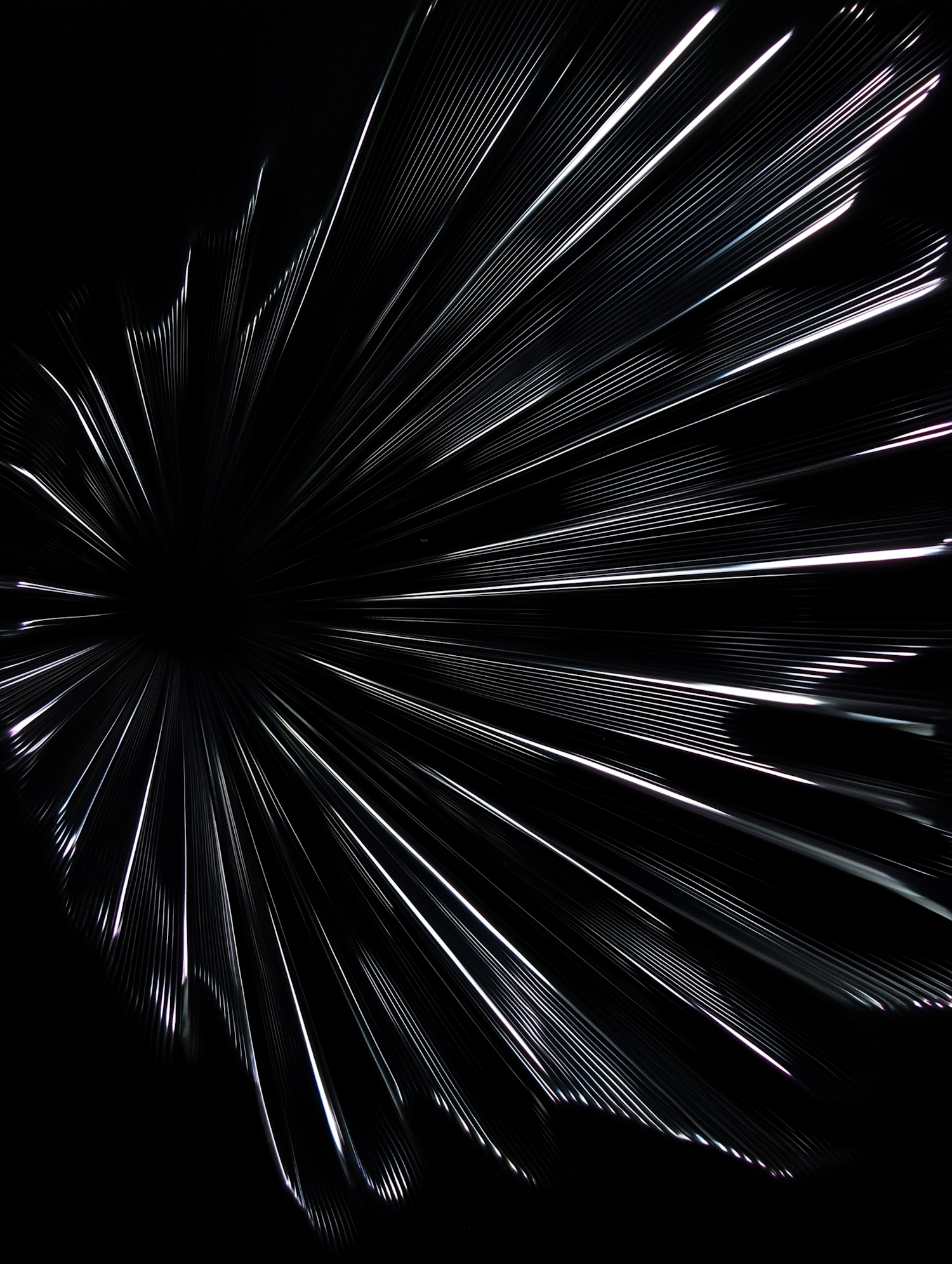 Abstract silvery lines radiating dynamically against a dark background, creating a striking contrast and sense of energy.