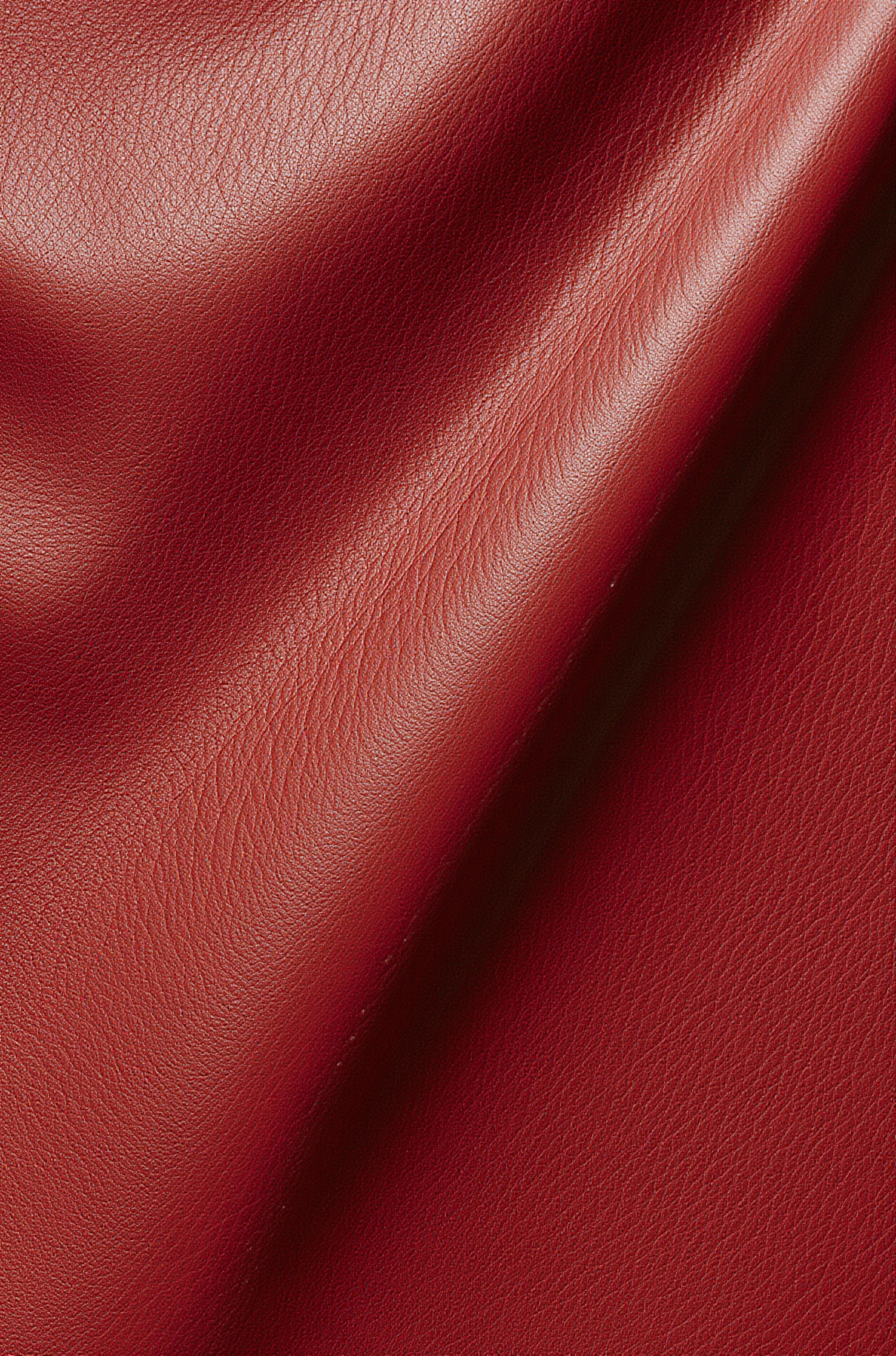 Close-up of vibrant red leather with a smooth, textured surface and natural folds, perfect for showcasing material quality and design.